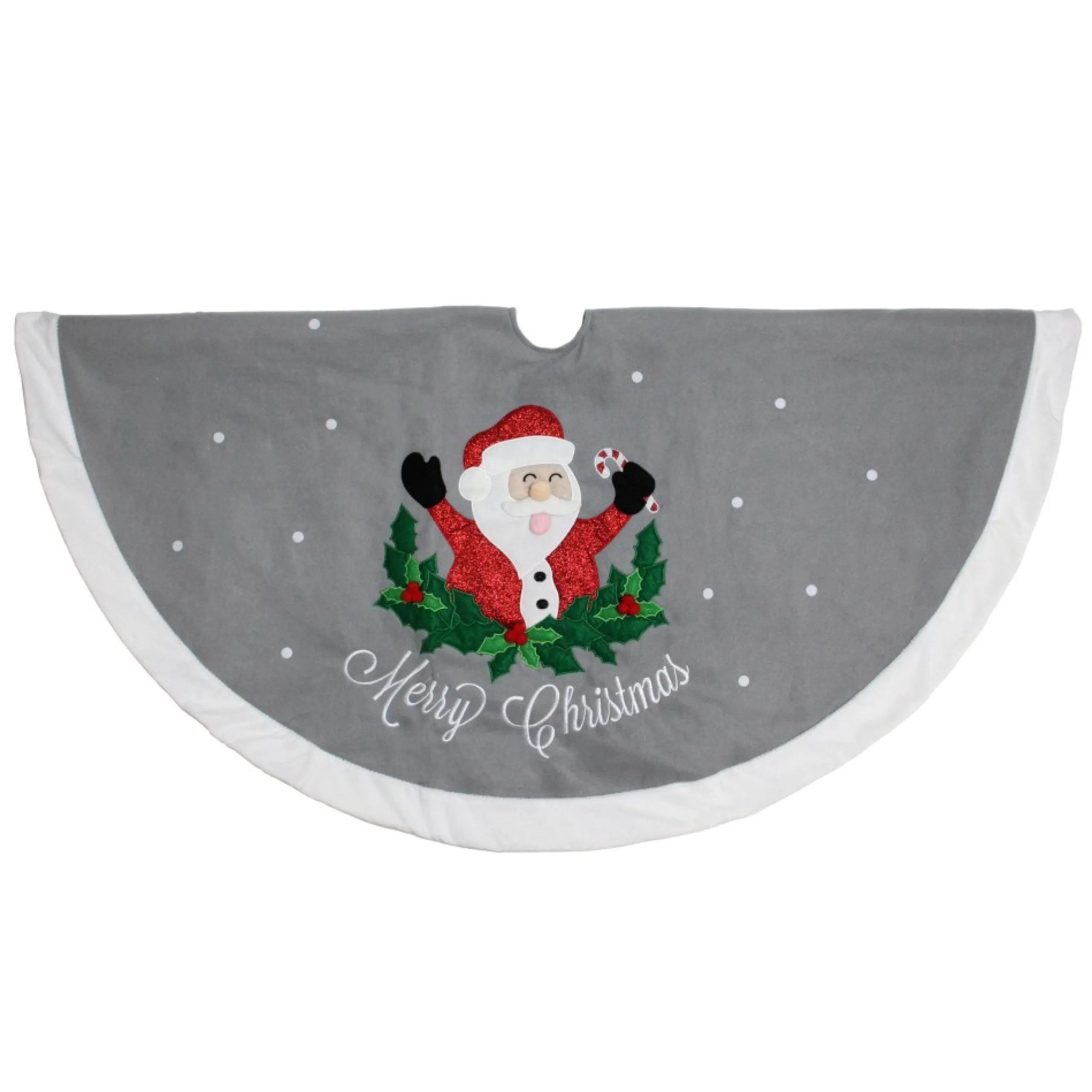 48 Inch And Smaller*Dyno 48″ Gray And White Traditional Happy Santa Christmas Tree Skirt