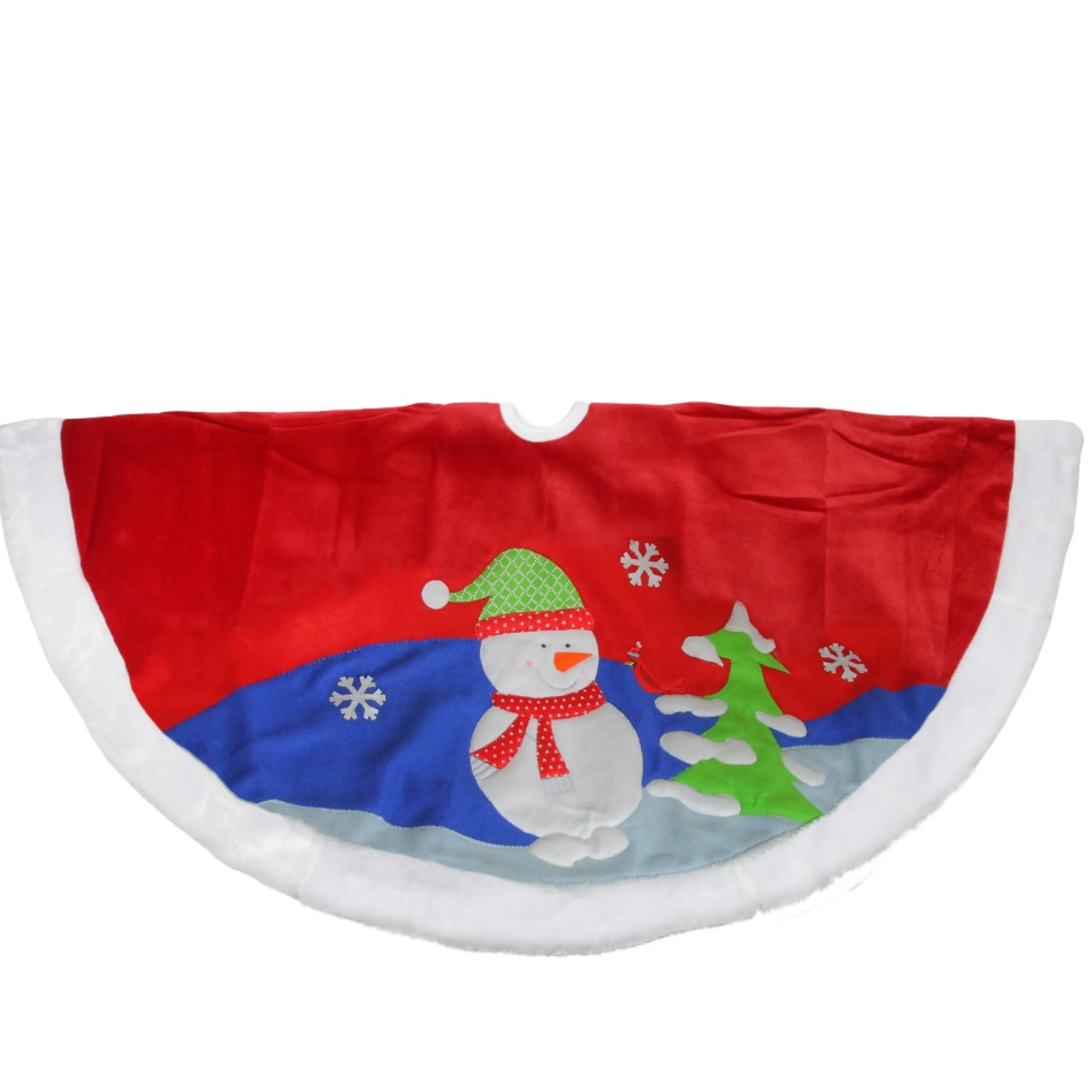 48 Inch And Smaller*Dyno 48″ Red Fleece Christmas Snowman Winter Tree Skirt With White Faux Fur Trim
