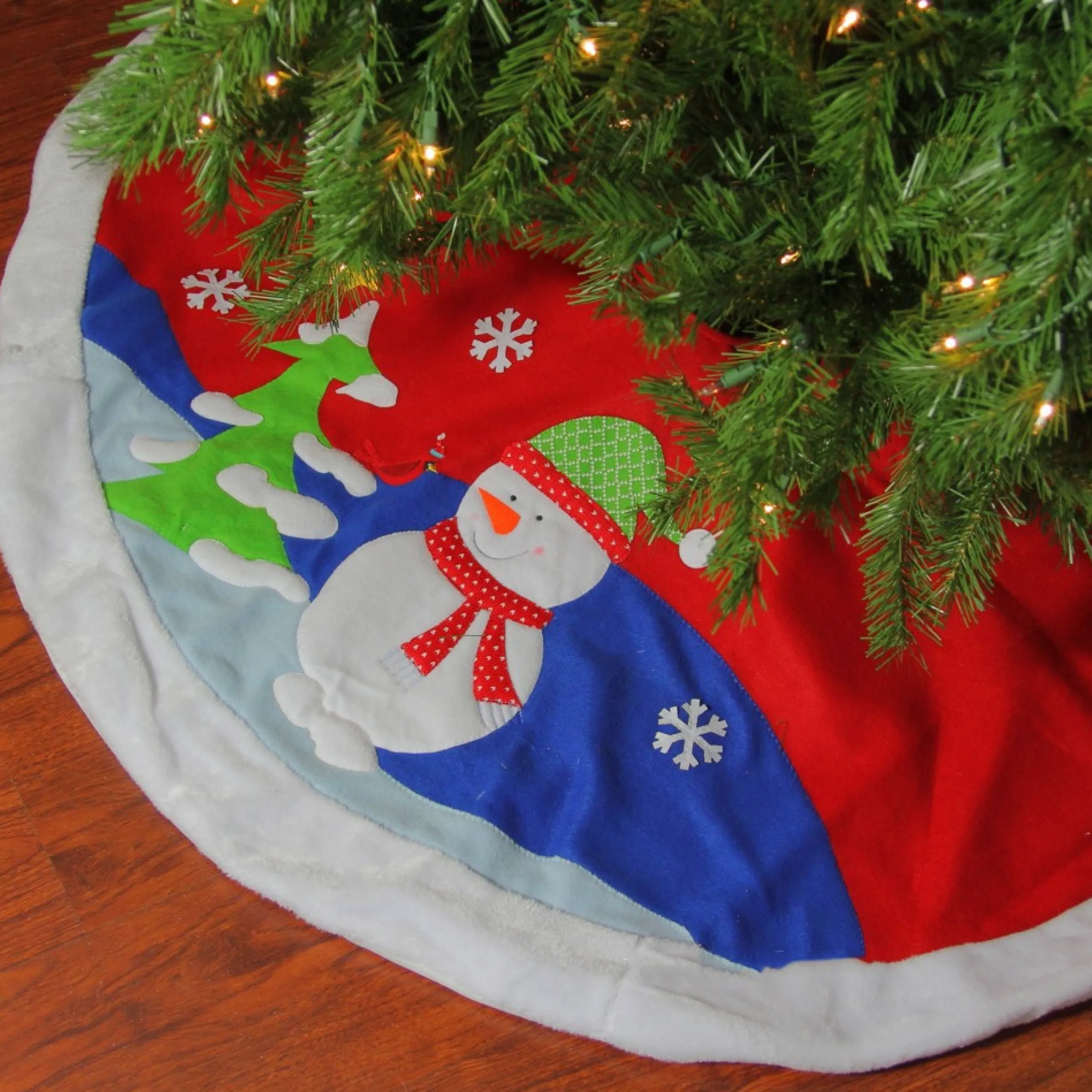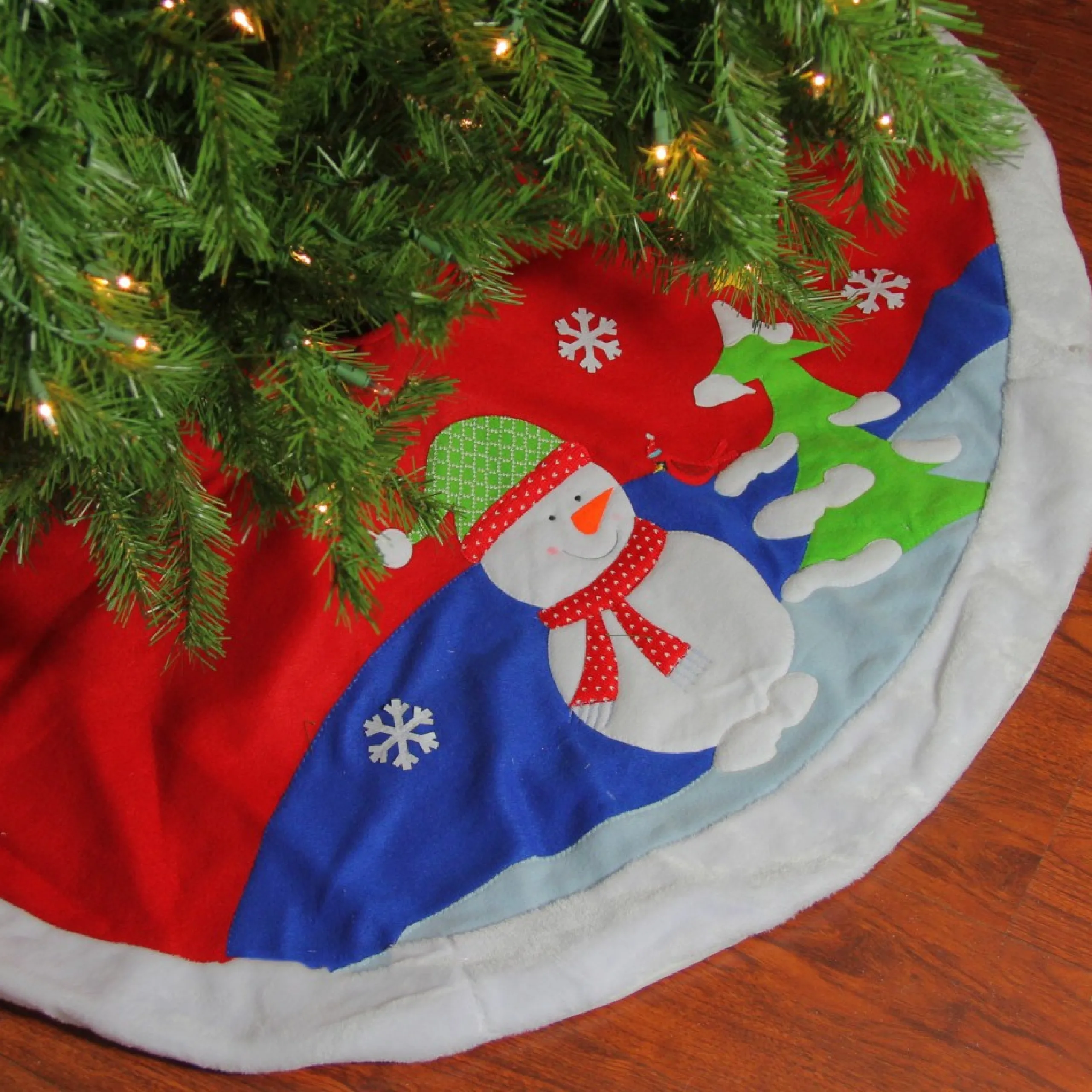 Take This Vibrant Skirt That Adds A Classy Feel To Your Festive Decoration. This Two-Toned Fleece Christmas Snowman Skirt Would Indeed Be A Pop Of Color. Append Some Fun To Your Festival Decor With This Winter View Tree Skirt.