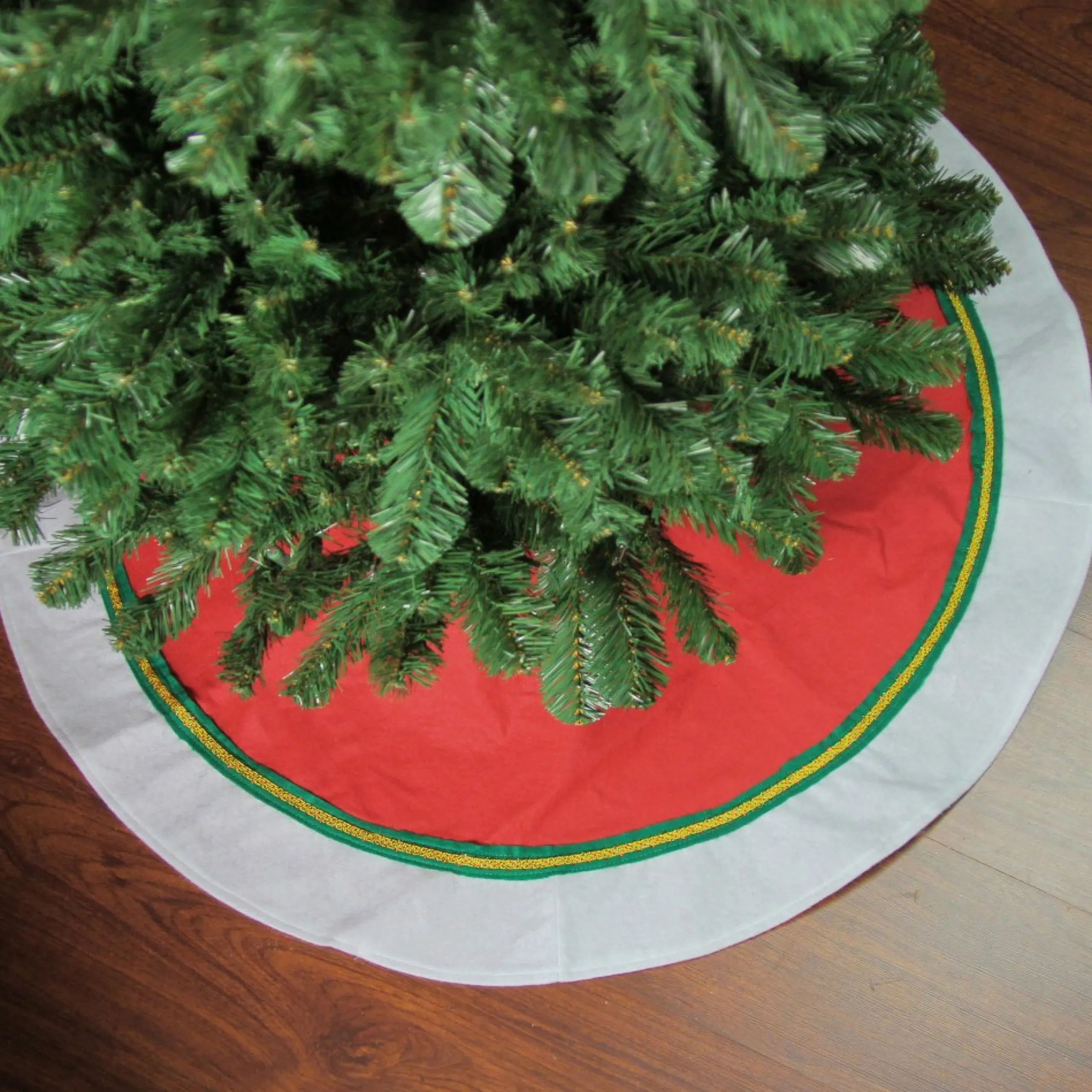 Add The Finishing Touches To Your Christmas Tree With This Decorative Tree Skirt. The Tree Skirt Is Red In The Center With A White And Green With Accents Of The Gold Border. This Simplistic Tree Skirt Is Ready To Use As-Is, Or You Can Add Your Own Special Touches. Perfect To Protect Floors And Carpets Surrounding Your Tree.