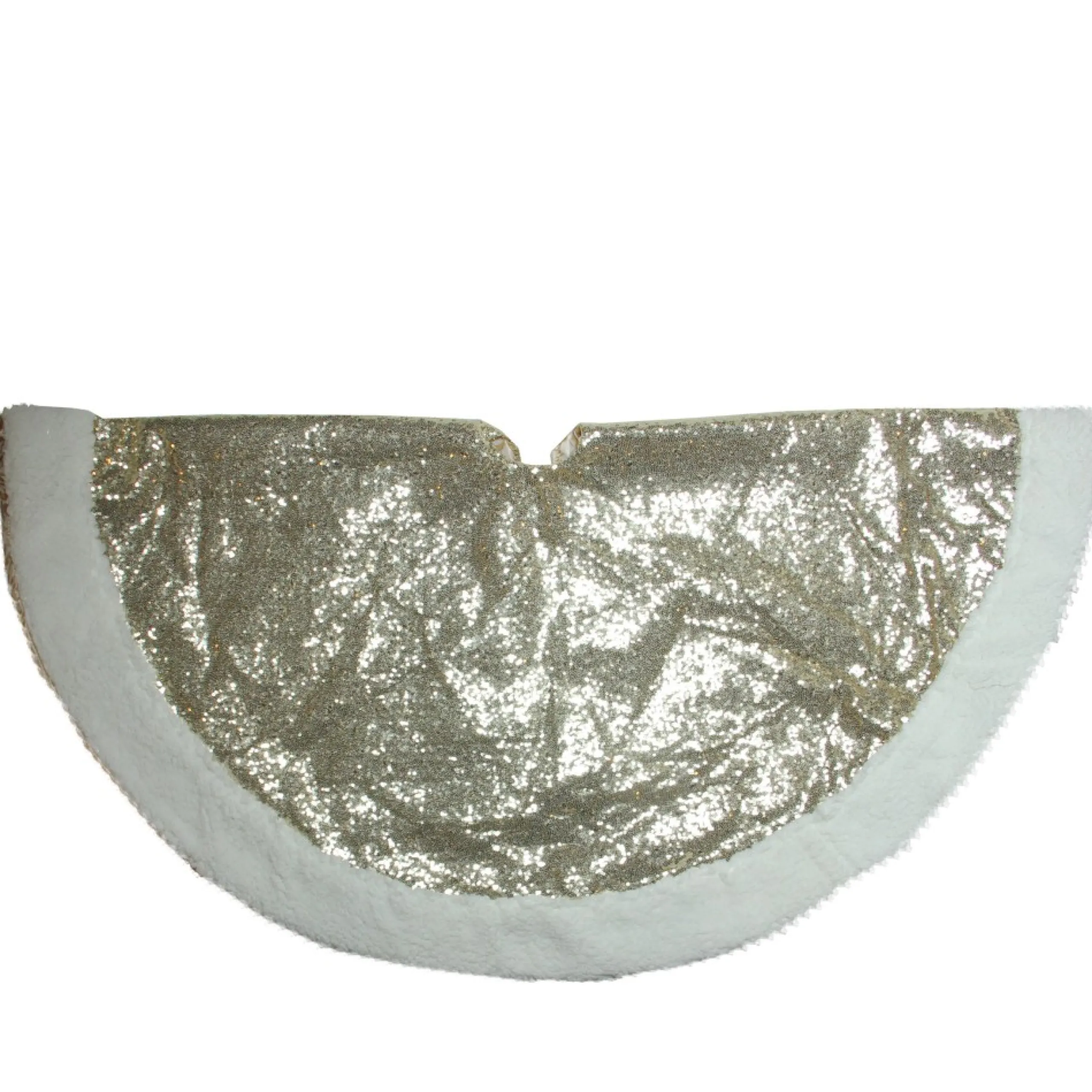 Dress Your Christmas Tree In This Fashionable Gold Sequined Tree Skirt. This Festive Gold Tree Skirt With A High Pile Fleece Fur Border Creates A Unique Touch To Your Holiday Decor. From The Gilded White Christmas Collection, This Tree Skirt Is Perfect For Adding Shimmer And Shine To Your Holiday Decor!
