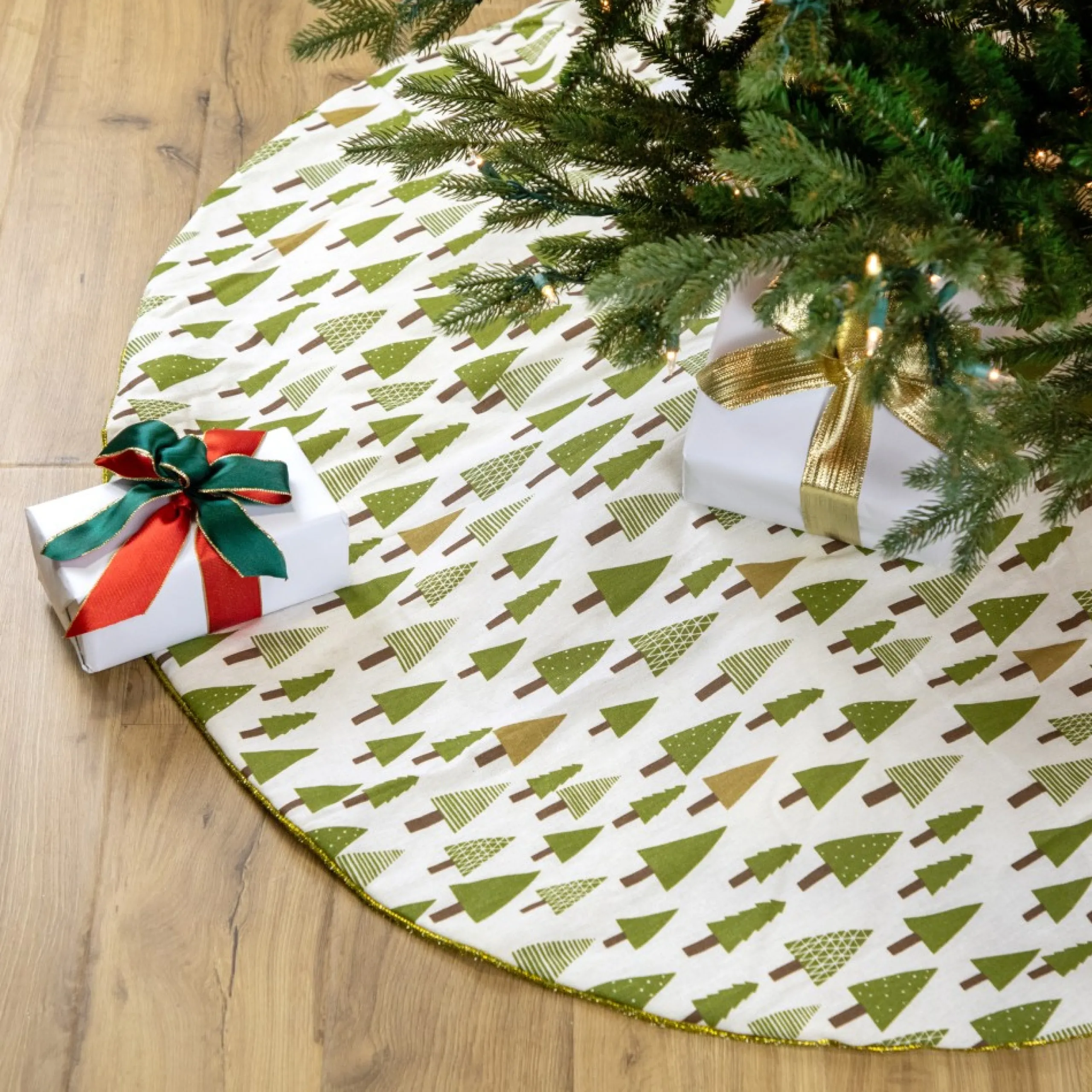 This Adorable Christmas Tree Skirt Would Spruce Up Your Home Perfectly For The Holiday Season. The Various Green Pine Trees With Decorative Designs Can Easily Match With Your Existing Christmas Decor. The Lovely Addition Will Add A Festive Touch That Is Very Well Needed. Decorate The Base Of Your Tree With This Lovely Tree Skirt For Many Years To Come.