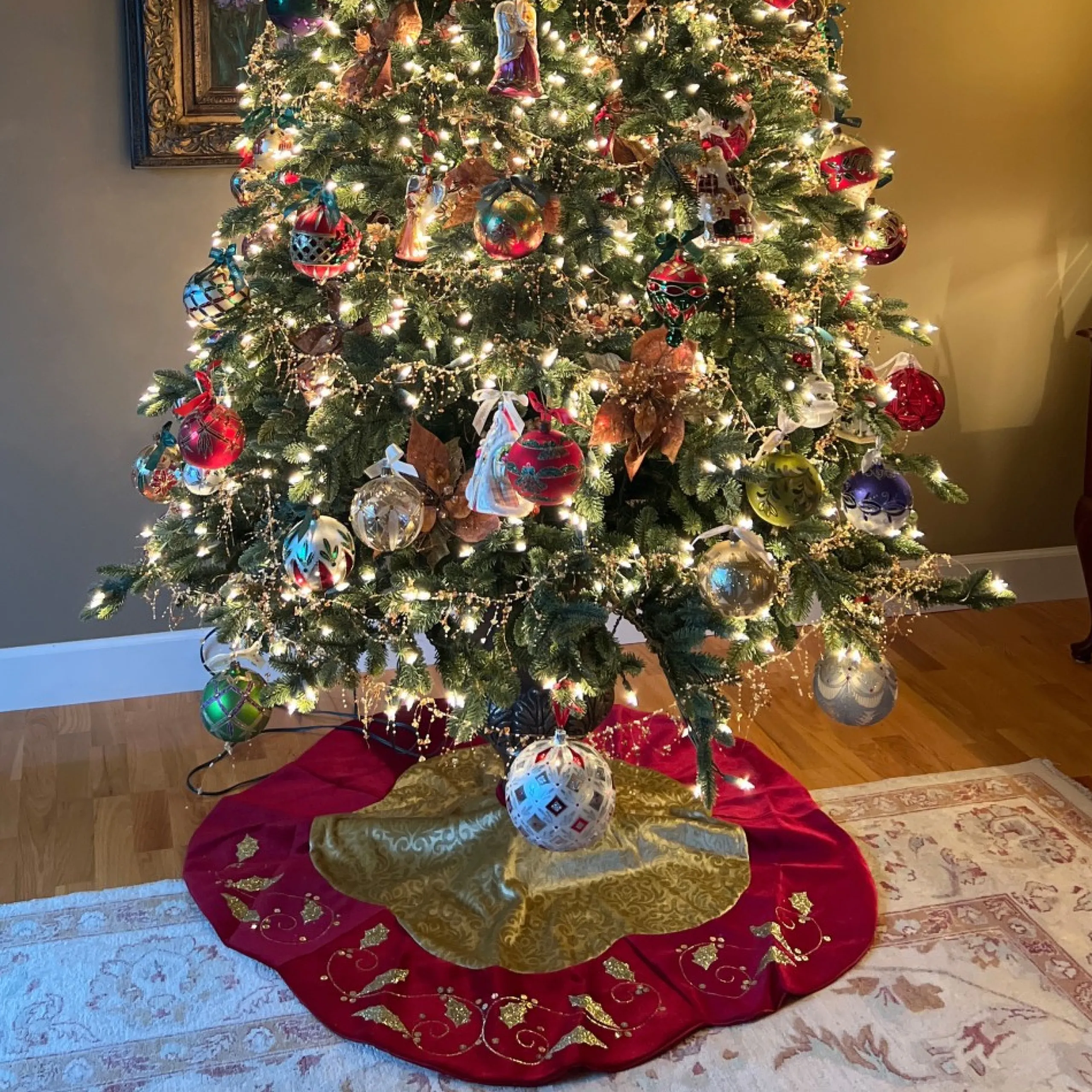 Spruce Up Your Christmas Tree This Season With This Beautifully Etched Burgundy And Gold Velvet Skirt. The Sparkling Glitter Applique And Metallic Embroidery Will Illuminate And Reflect The Colorful Christmas Lights Of Your Home, Enhancing The Look Of Your Holiday Decor. Imagine The Delight On Christmas Morning After Santa Visits And Piles The Gifts On This Skirt!