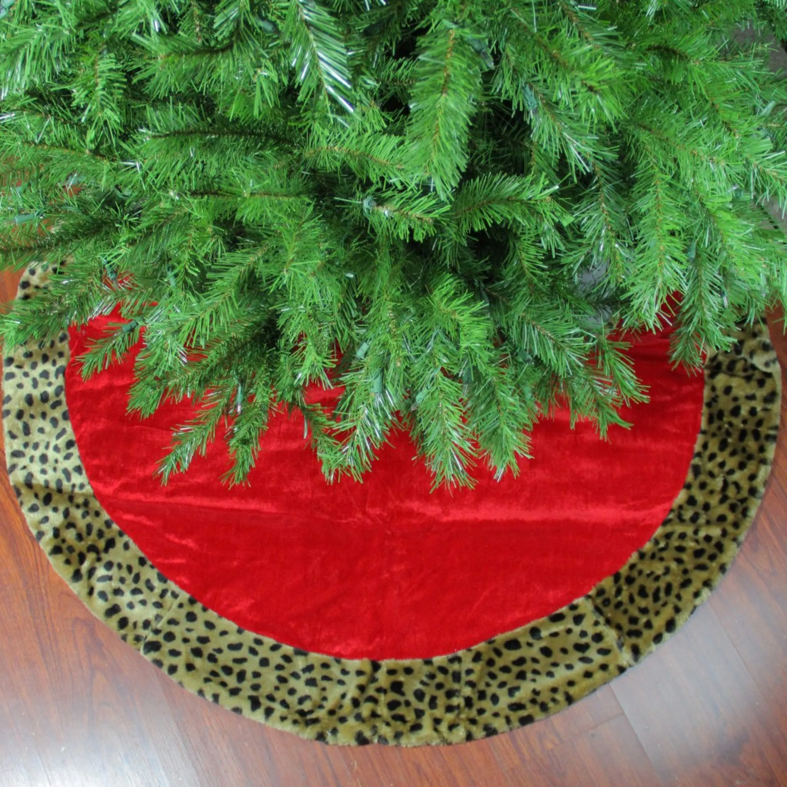 48 Inch And Smaller*Northlight 48″ Red And Brown Velveteen With Cheetah Print Border Christmas Tree Skirt