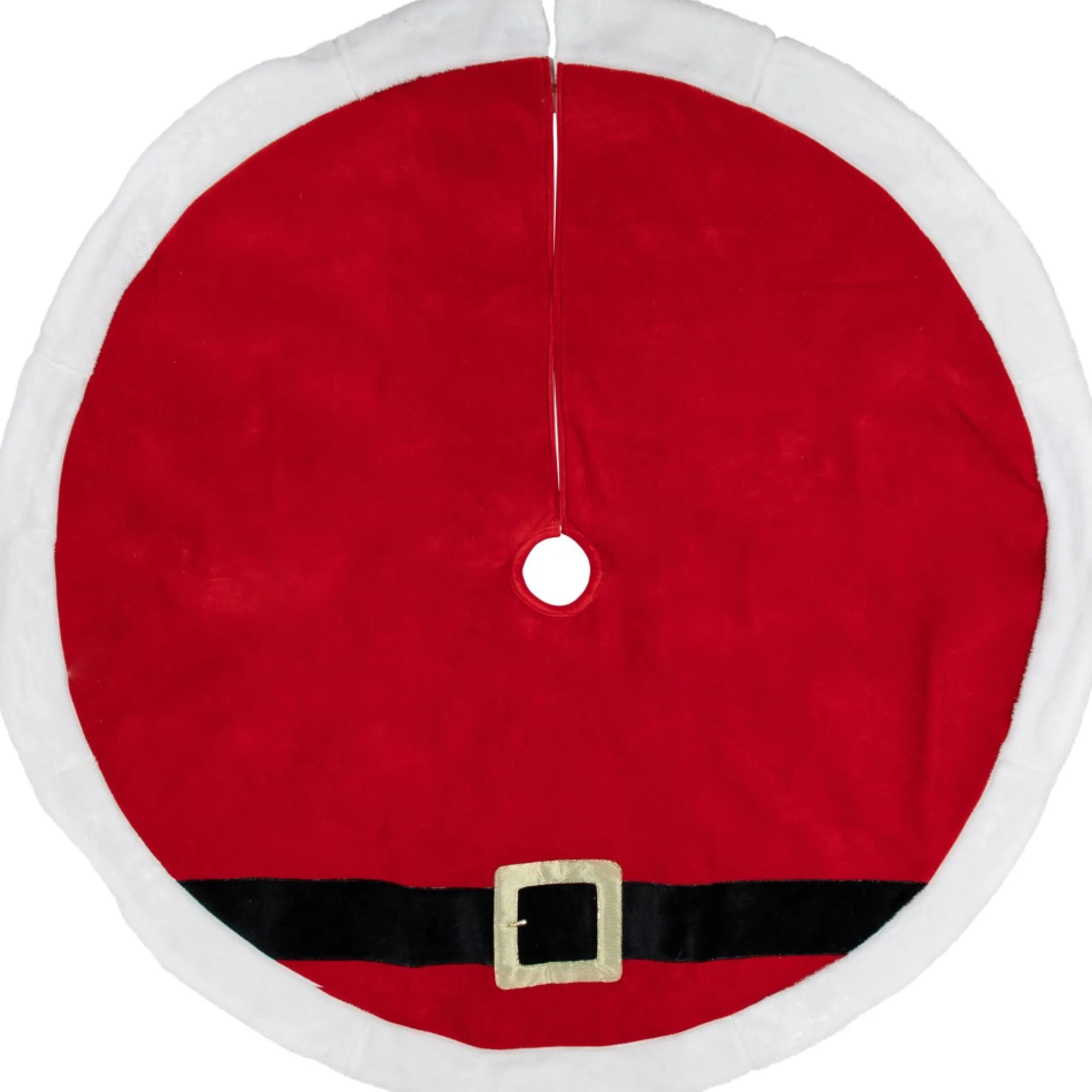 48 Inch And Smaller*Northlight 48″ Red And White Velveteen Santa Claus Belt Buckle Christmas Tree Skirt