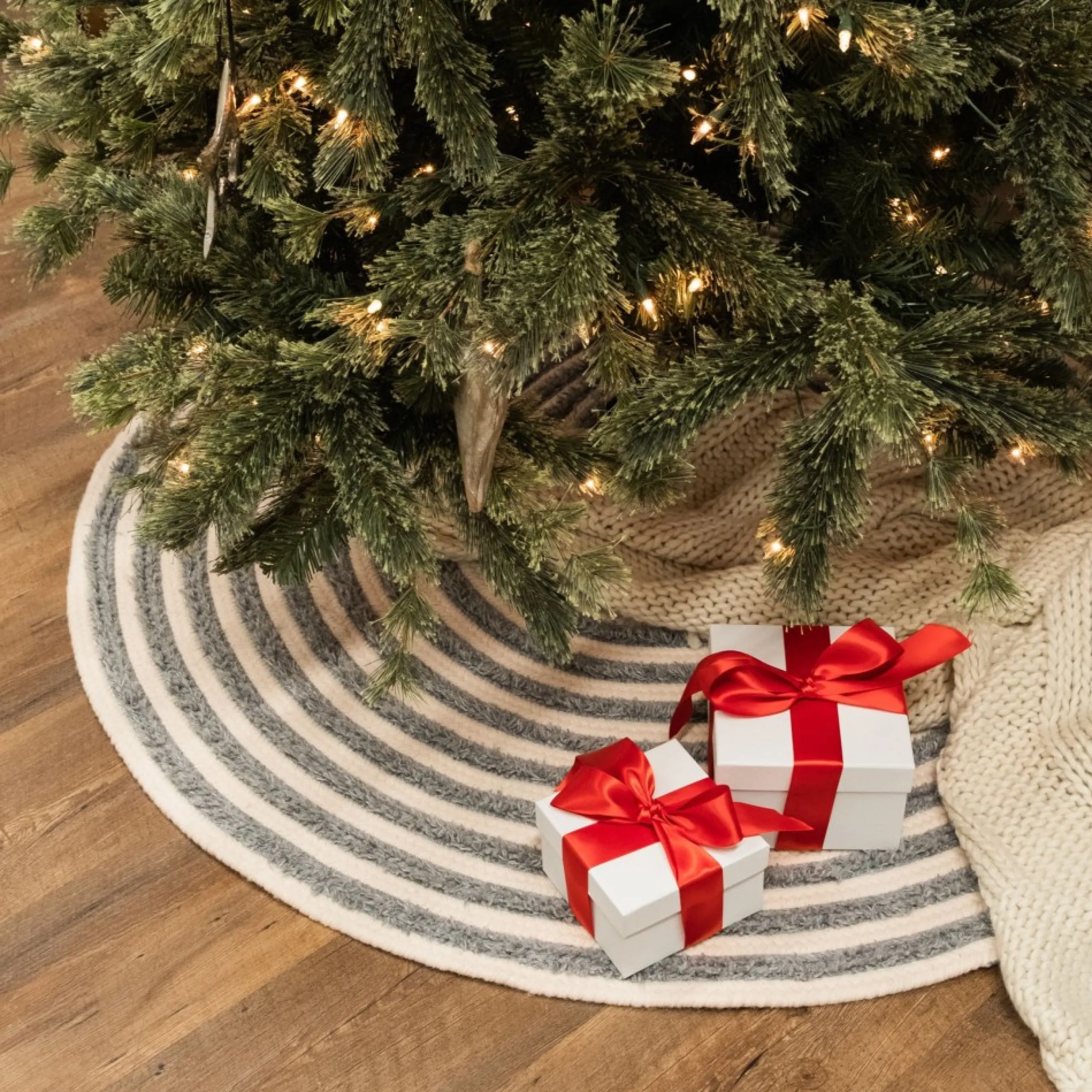 Transform Your Holiday Haven With Our Cozy Striped Tree Skirt. Its Tonal Shag Stripe Design Exudes Warmth, Complemented By Two Braided Ties For Secure Placement. Embrace A Texturized, Weathered Appearance That Embodies Unrivaled Quality, Durability, And Timeless Elegance. Elevate Your Festive Ambiance Effortlessly With This Inviting Addition To Your Decor.