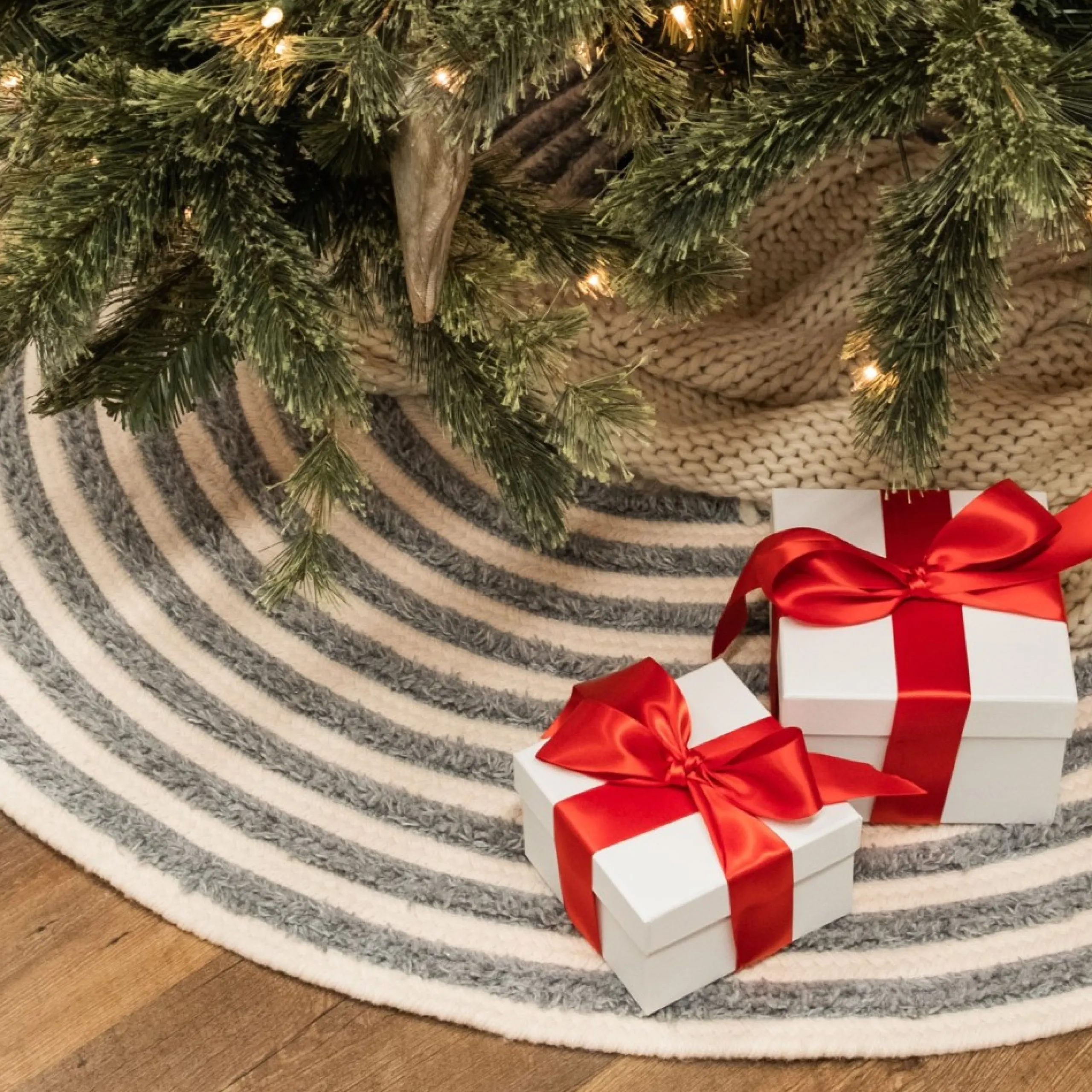 48 Inch And Smaller*Colonial Mills 44″ Gray And Beige Shag Striped Round Christmas Tree Skirt