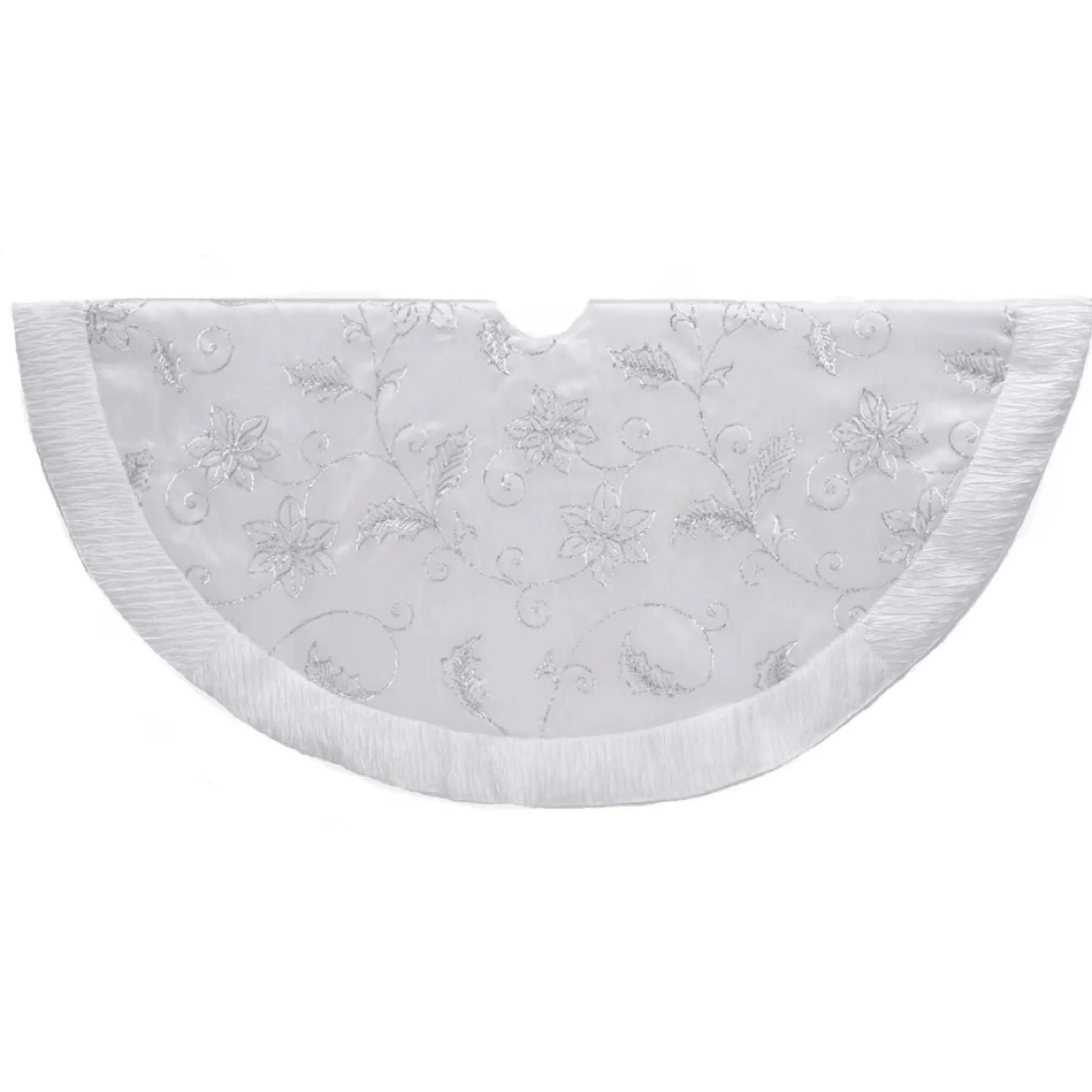 50 Inch And Larger*KSA 50″ White With Sequin Flowers Christmas Tree Skirt