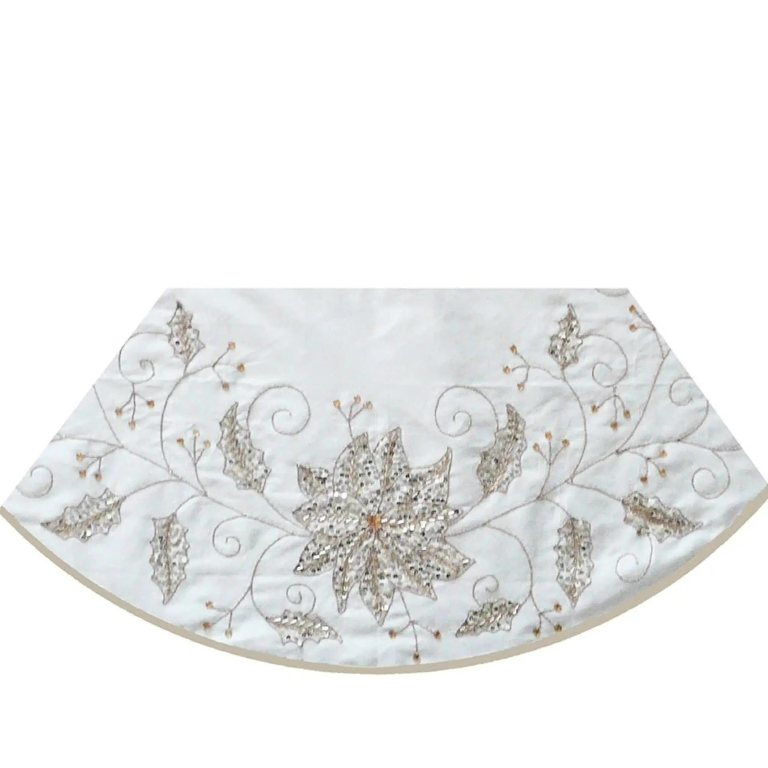 This Ivory And White Snowflake Tree Skirt Is A Fun And Festive Addition To Any Holiday Decor. This Tree Skirt Features An Ivory Design With Gold Holly Leaves And Flower Detailing. It Is Accented By Gold Trim. Great For All Kinds Of Holiday Decorations Including Tree Trimming, Mantle Displays, Tabletop, Centerpieces, And More.