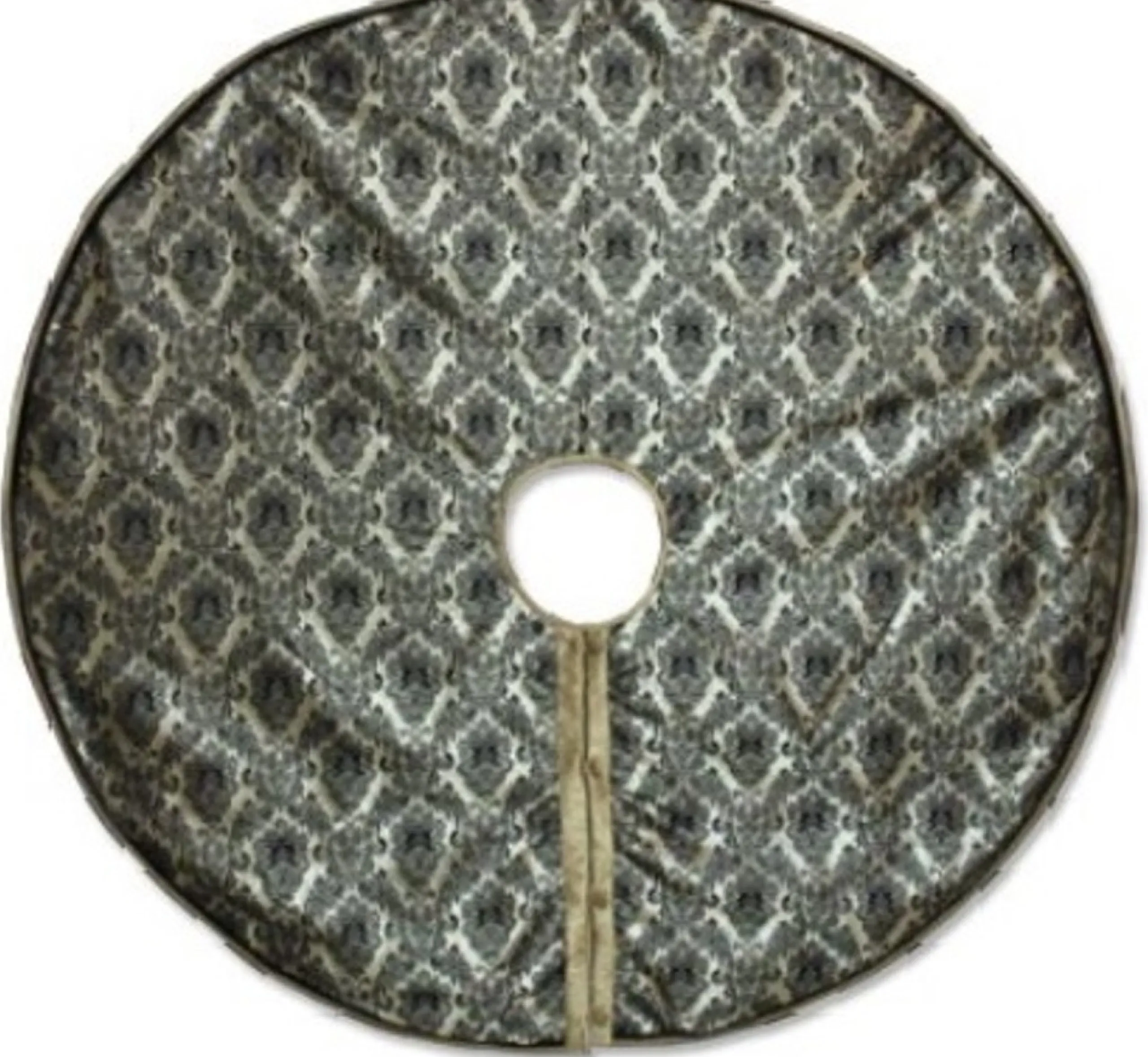 Tree Skirt Has A Sheer Overlay That Features A Black Damask Design