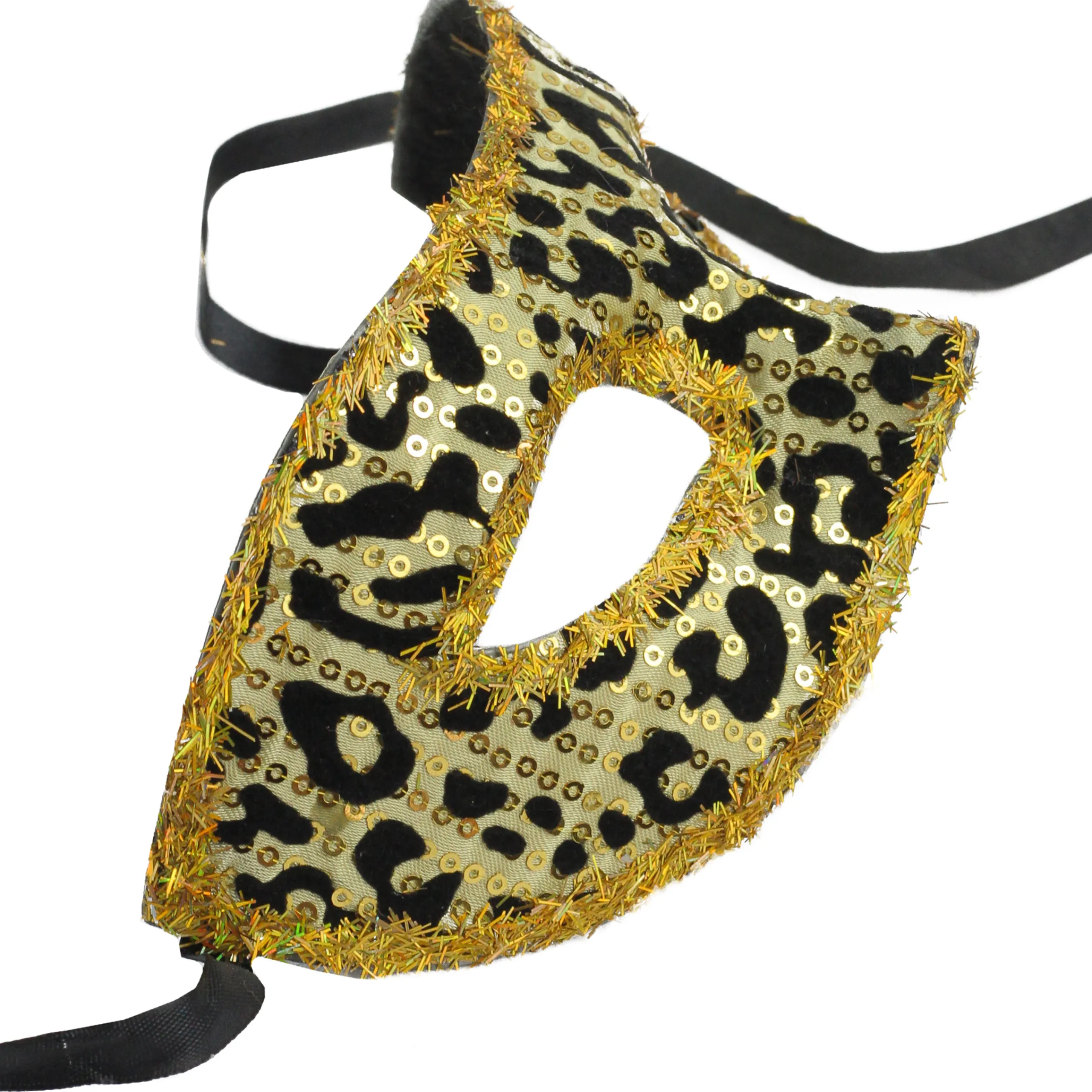 Allstate 7″ Gold And Black Big Cat Animal Print Halloween Mask With Sequins – One Size