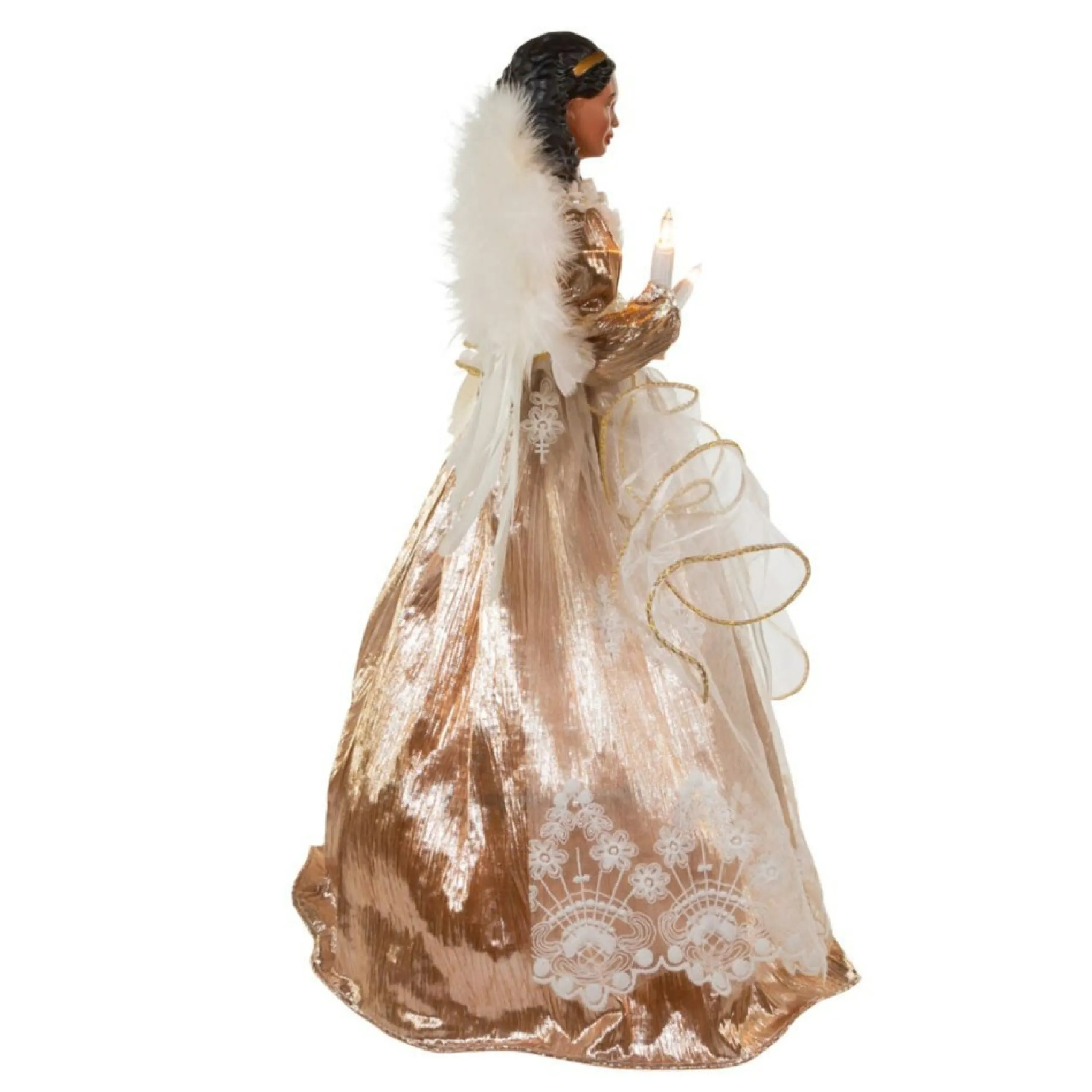 Angel Tree Toppers*KSA 16″ Pre-Lit Rose Gold African American Angel Christmas Tree Topper