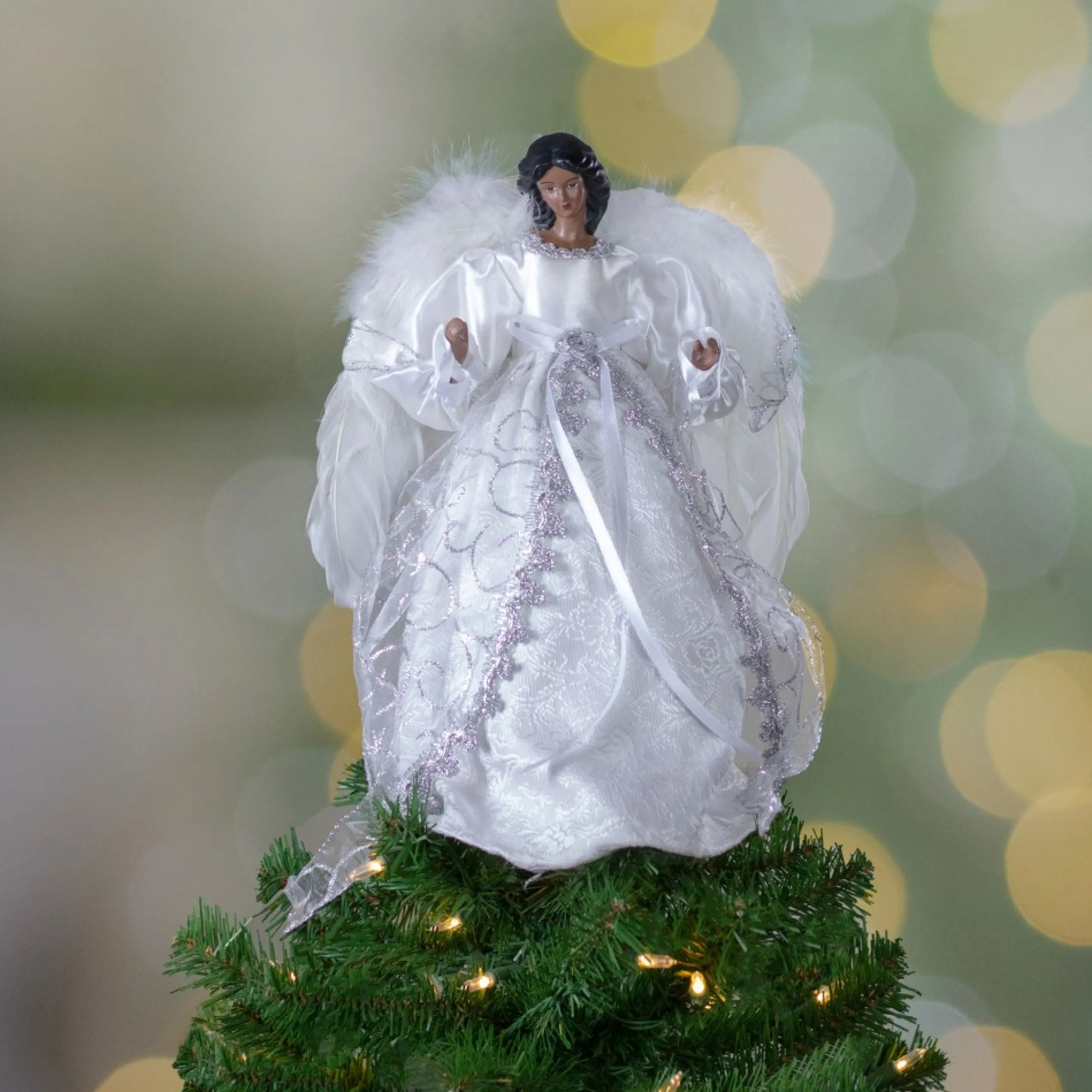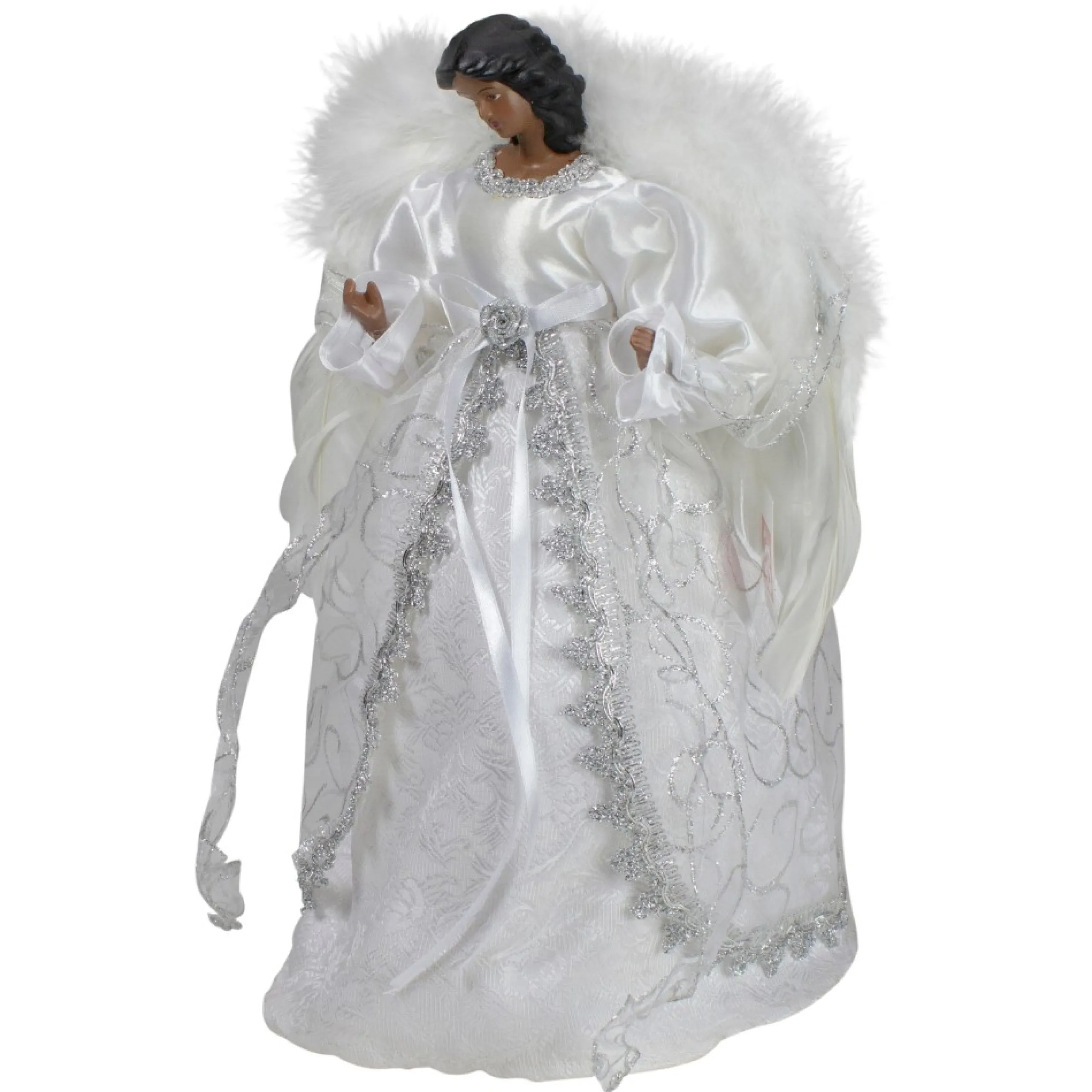 Angel Tree Toppers*Northlight 14″ African American Silver And White Angel Christmas Tree Topper, Unlit