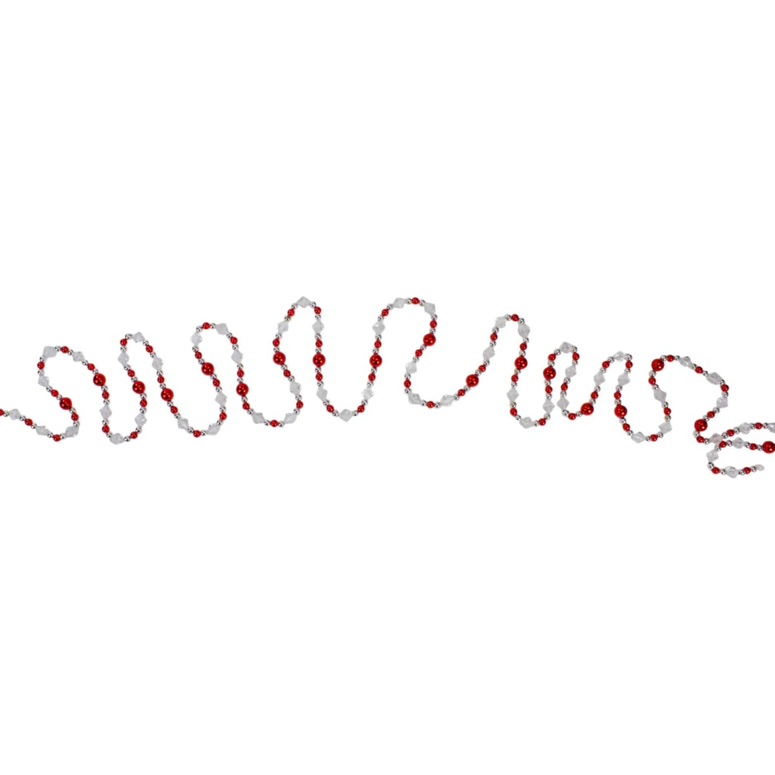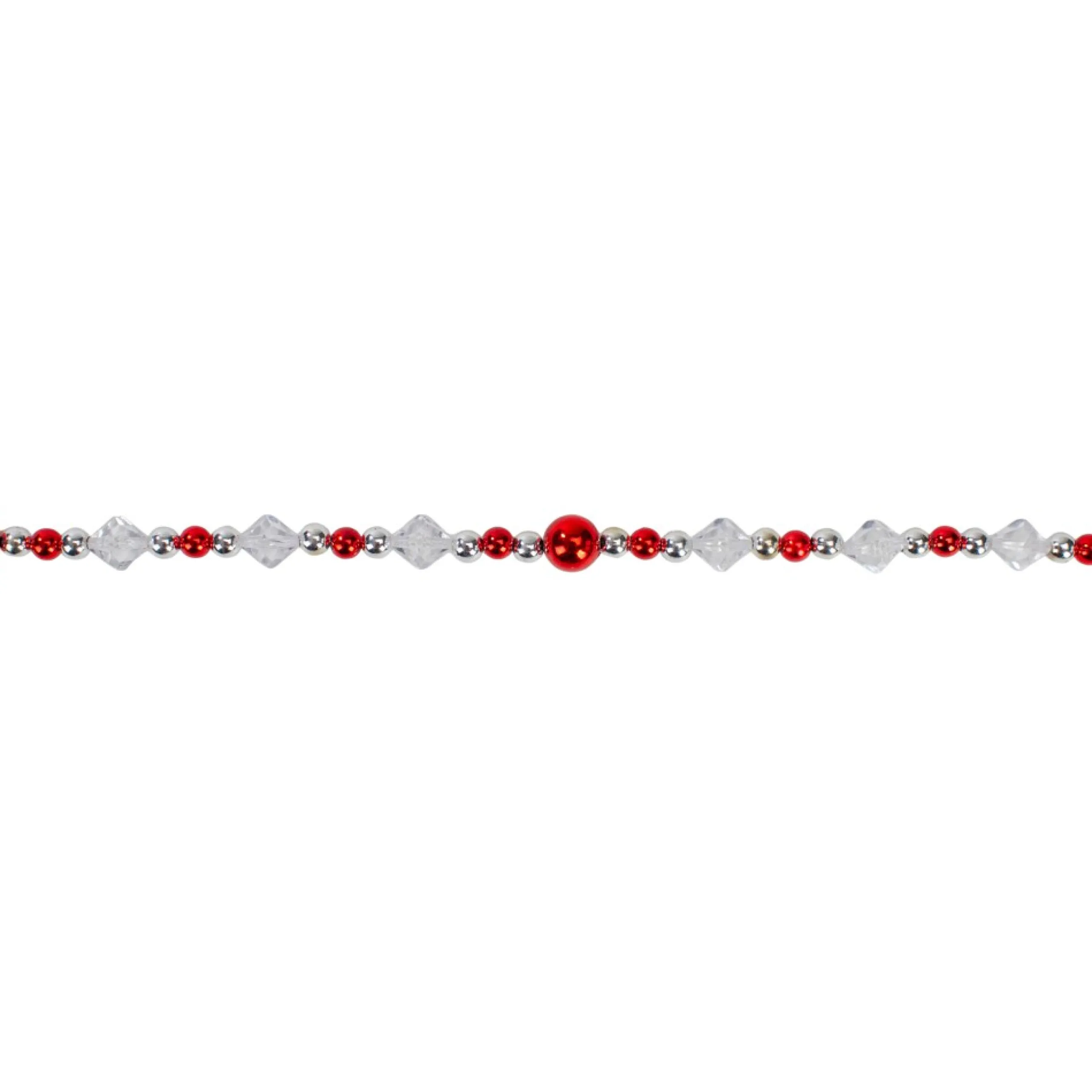 Beaded Garland*Kurt Adler 9′ Red, Silver And Clear Faceted Beaded Christmas Garland – Unlit