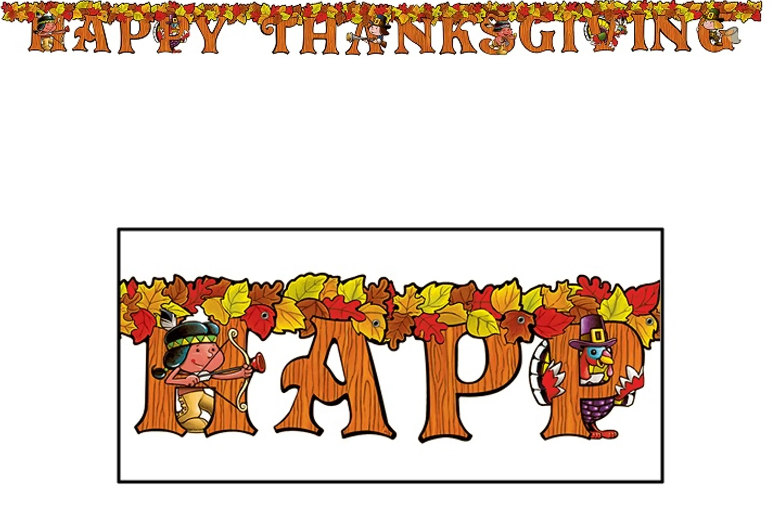 Beistle Club Pack Of 12 “Happy Thanksgiving” Jointed Party Streamer Banners 72″