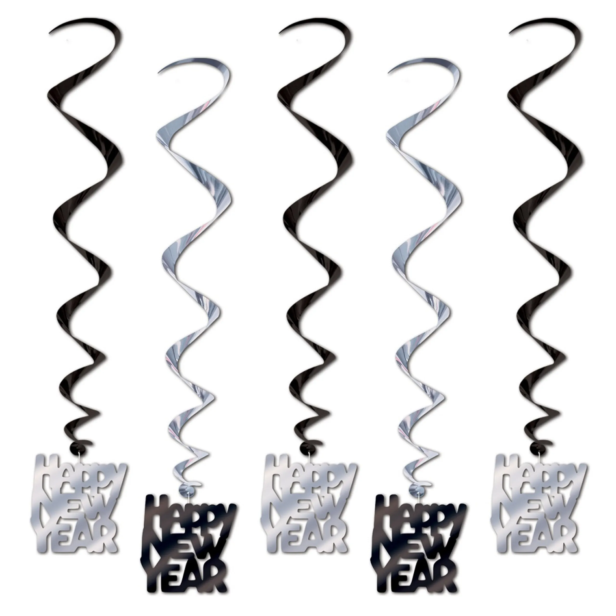 Beistle Club Pack Of 30 Silver And Black Whirls “Happy New Year” Party Decoration 33″