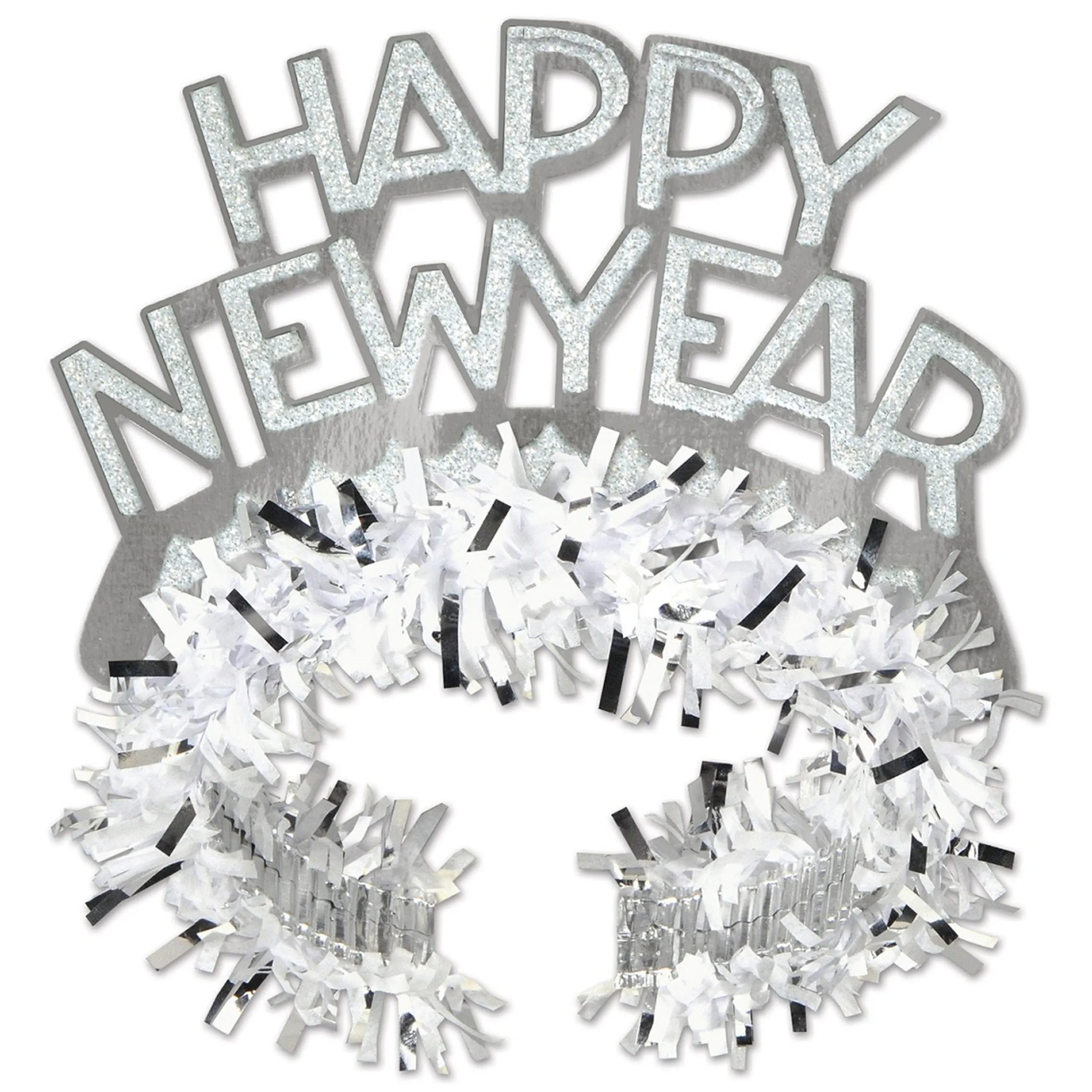 Beistle Club Pack Of 50 White And Silver Regal “Happy New Years” Legacy Party Favor Tiaras
