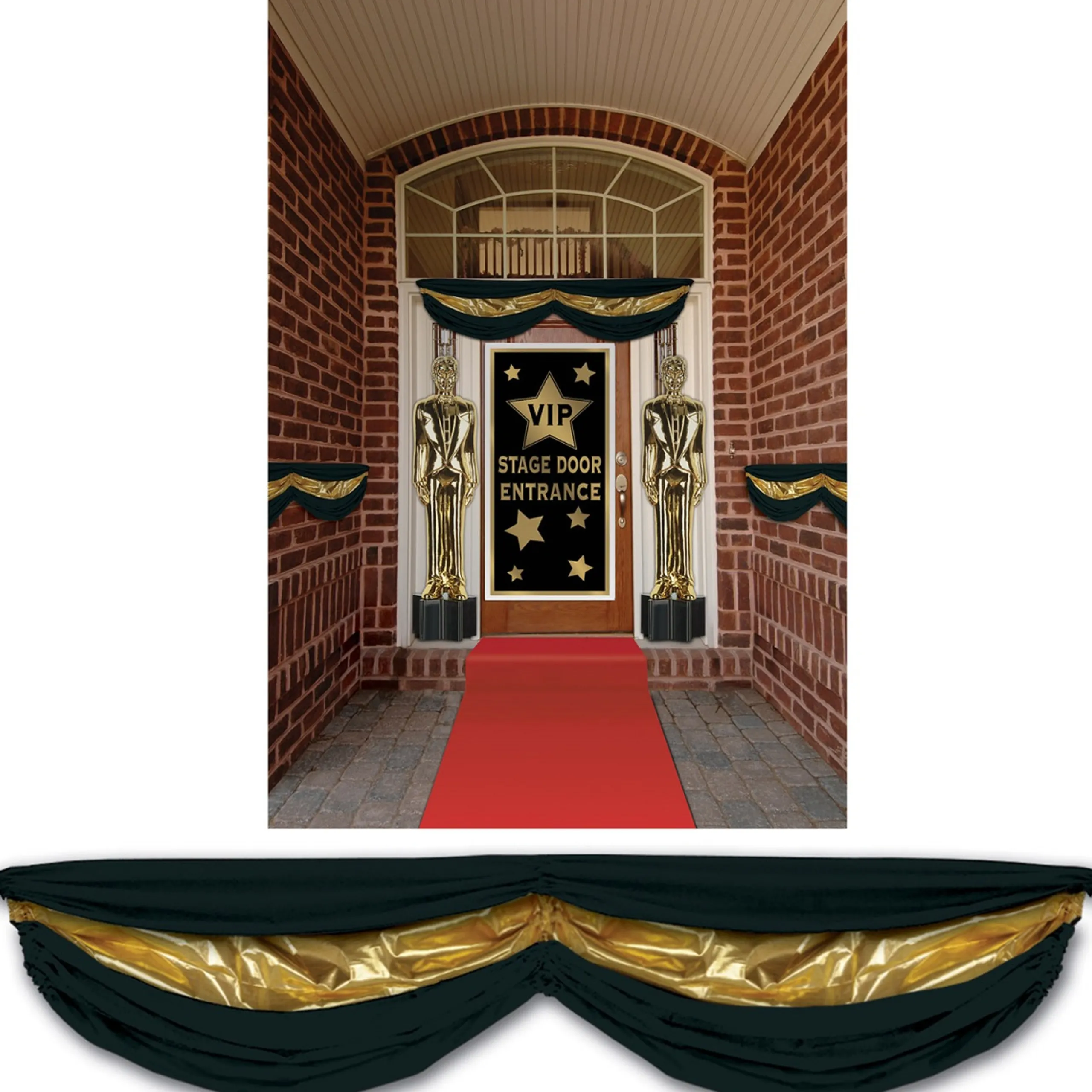 Beistle Pack Of 6 Black And Gold Awards Night Fabric Bunting Hanging Decorations 70″