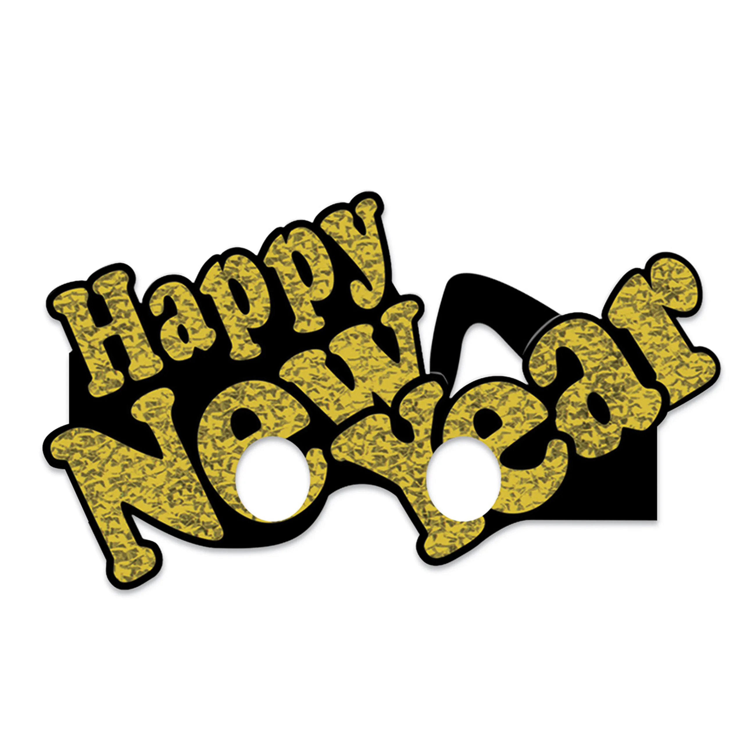 Beistle Pack Of 72 Black And Gold Happy New Year Eyeglasses In Glitter Print