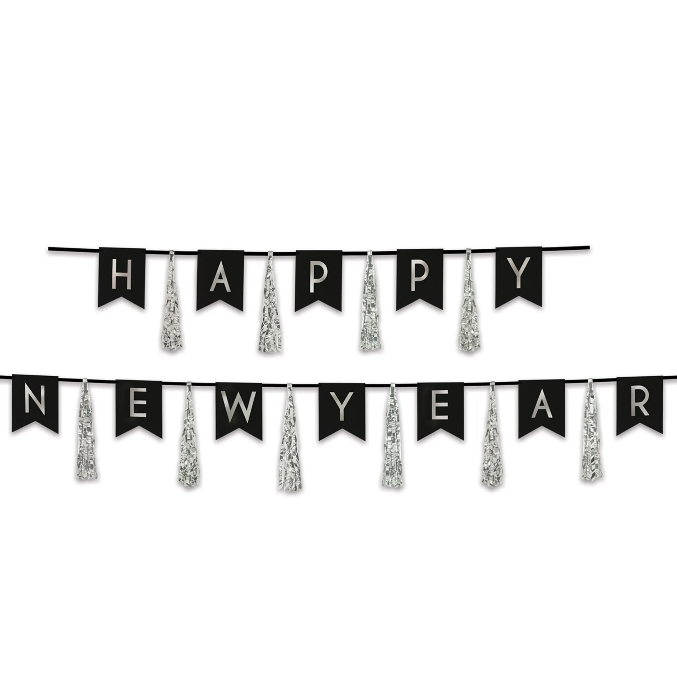 The Package Contains One Pair Of Tassel Streamers. These Streamers Are Made Of Card Stock Paper Pennants With Silver Foil Stamping. Each Streamer Can Be Used As Two Separate Pieces Or Together As One. “Happy” Measures 13 Inches Long By 6 Feet Wide And “New Year” Measures 6 Inches Long By 9 Feet Wide. Hang These Banners Up For New Year’s!