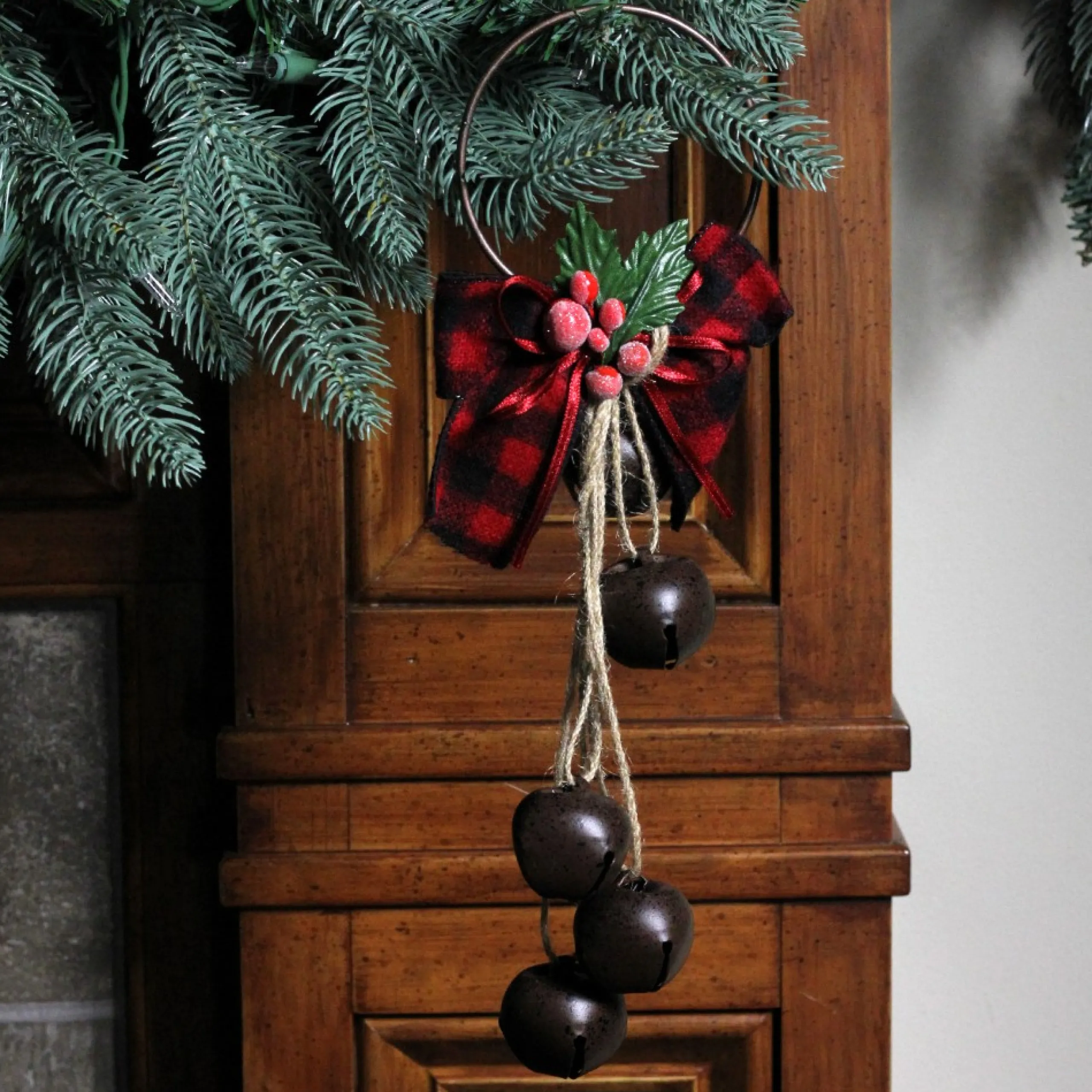 Bells*Kurt Adler 12″ Rustic Bow With Round Bells Christmas Door Hanger