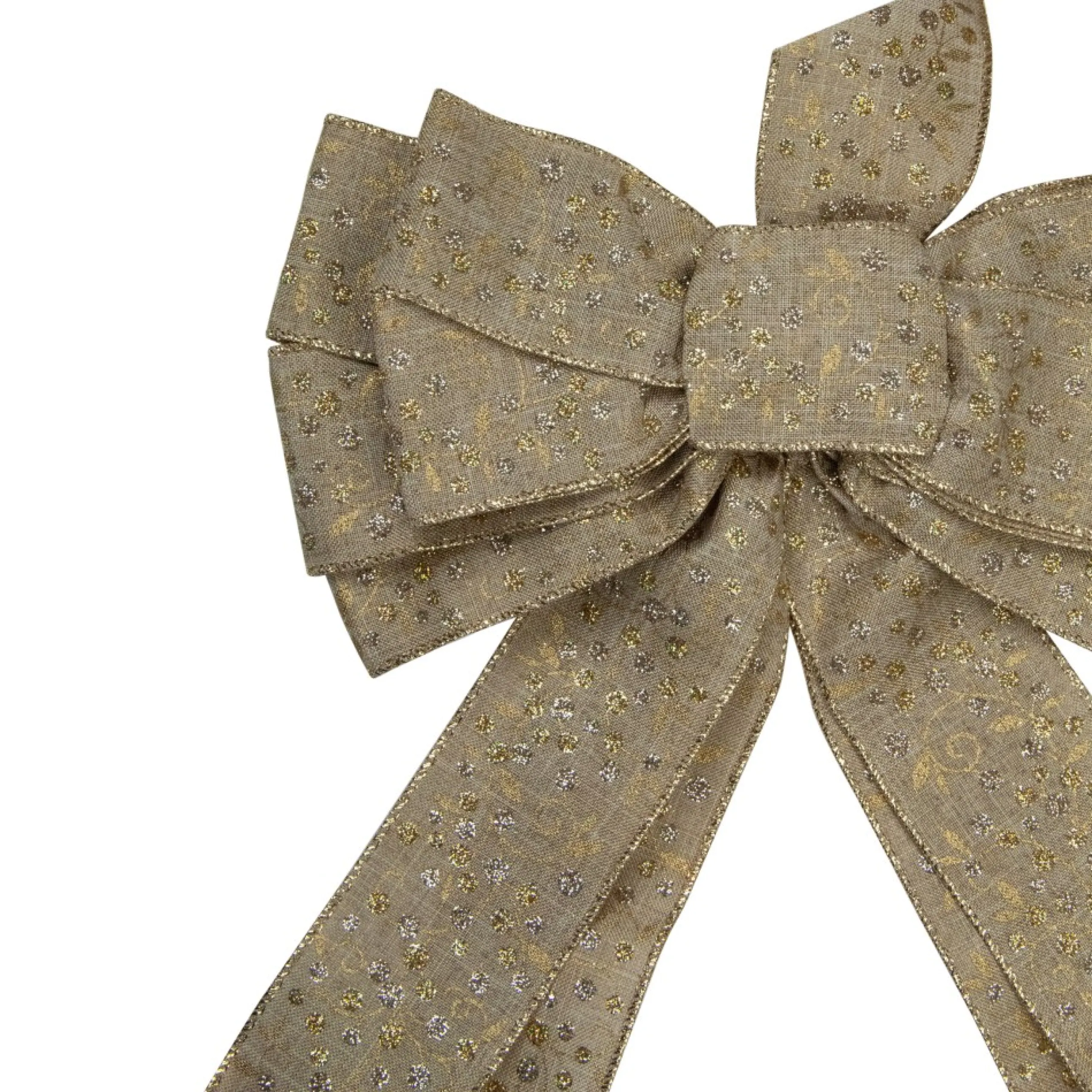 Bows*Northlight 12″ X 25″ Burlap And Gold 10 Loop Christmas Bow Decoration