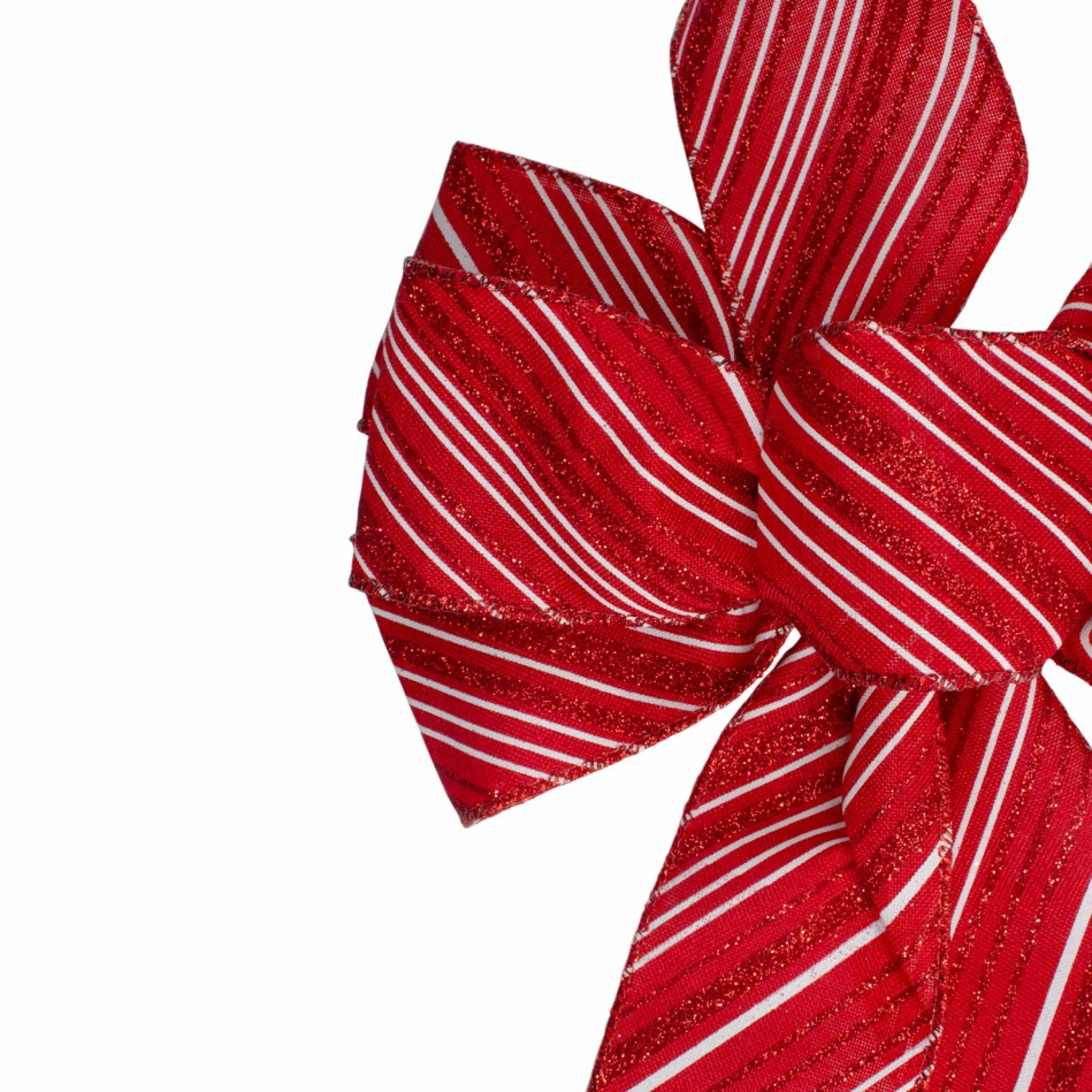 Bows*Northlight 14″ X 9″ Red And White Striped 6 Loop Christmas Bow Decoration