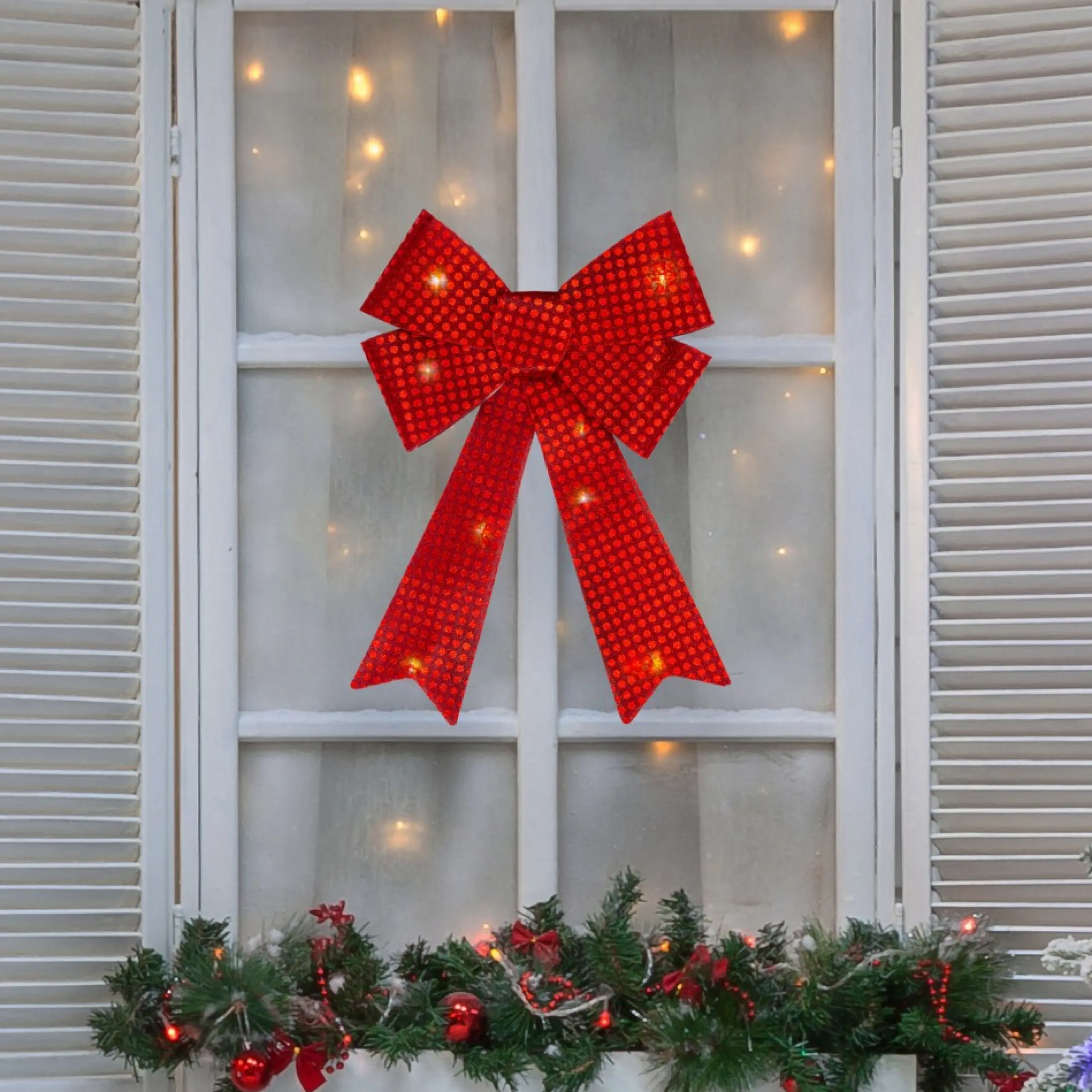 Bows*Northlight 17.5″ Led Lighted Red Sequin Bow Christmas Decoration
