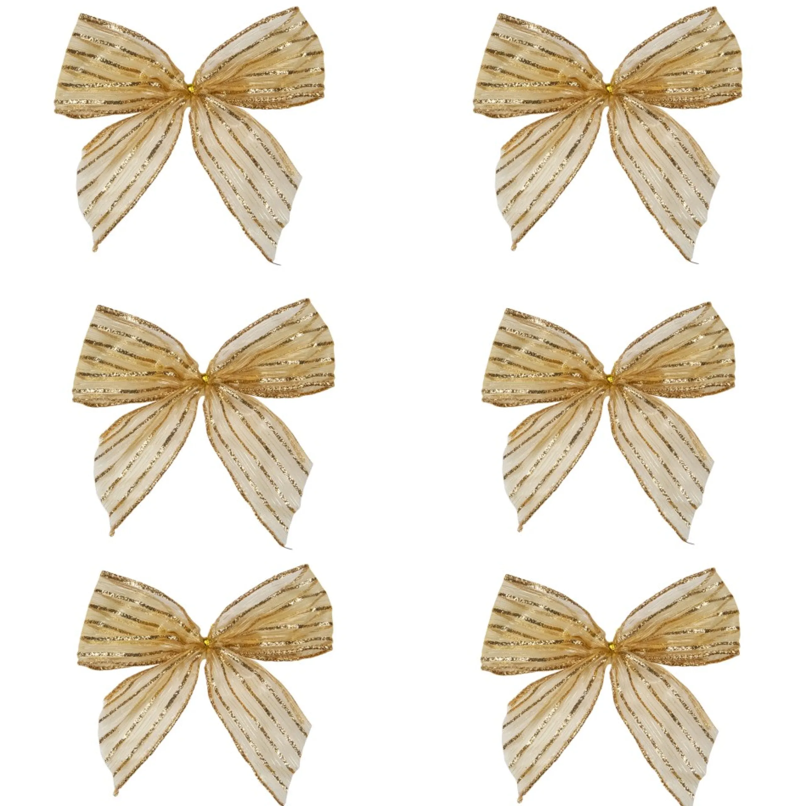 Gold Glitter Striped Christmas Bow Decorations