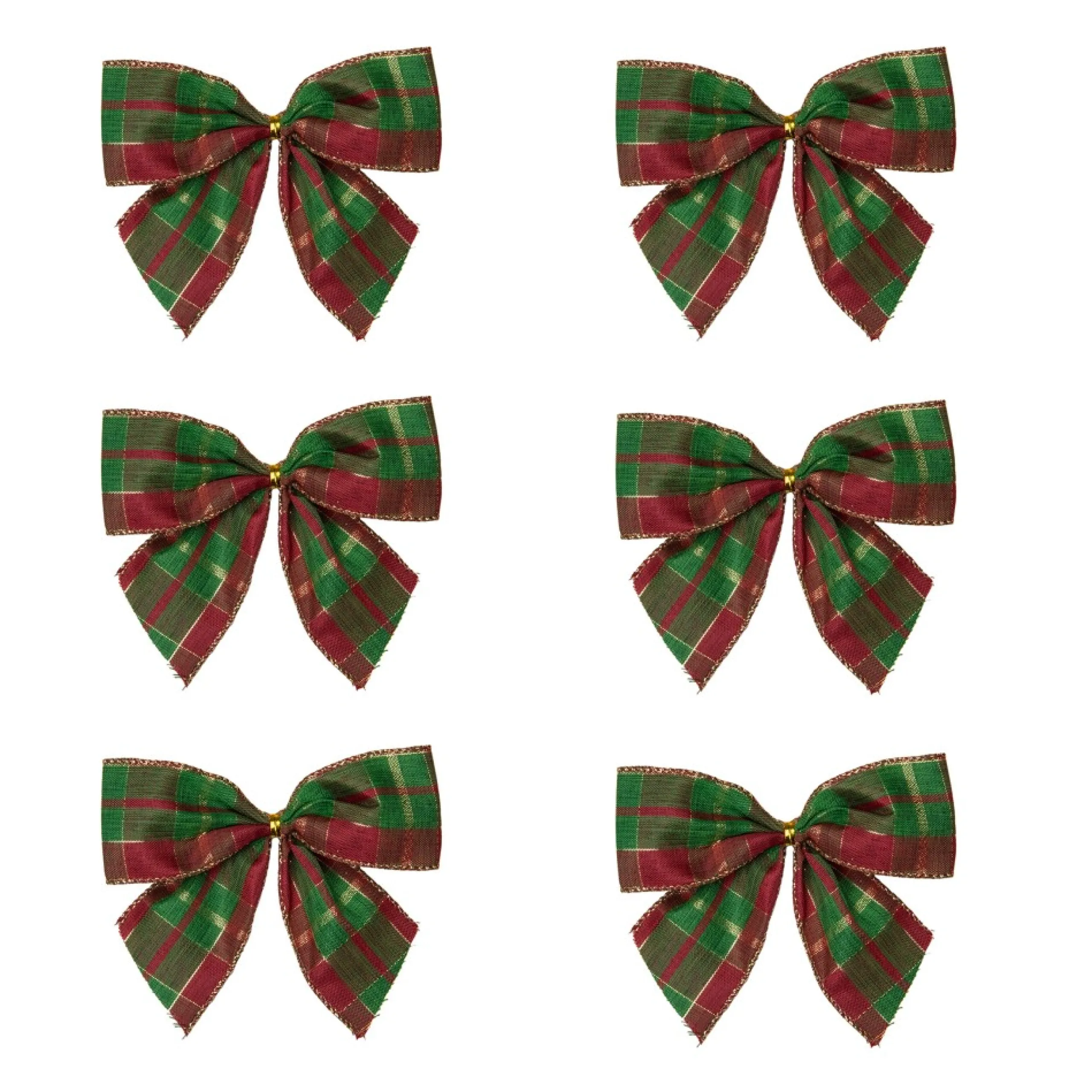 Bows*Northlight Pack Of 6 Red And Green Plaid 2 Loop Christmas Bow Decorations 5.5″