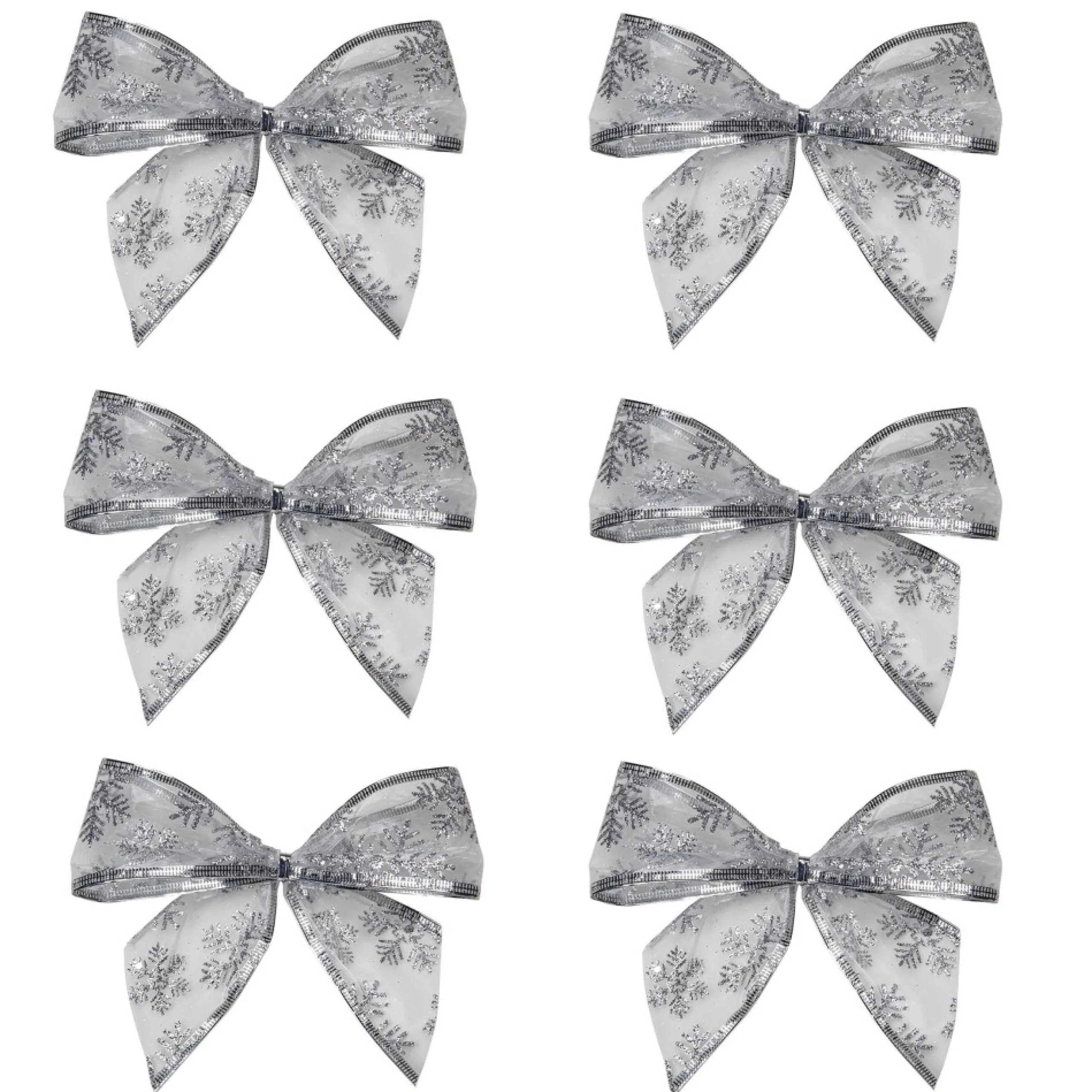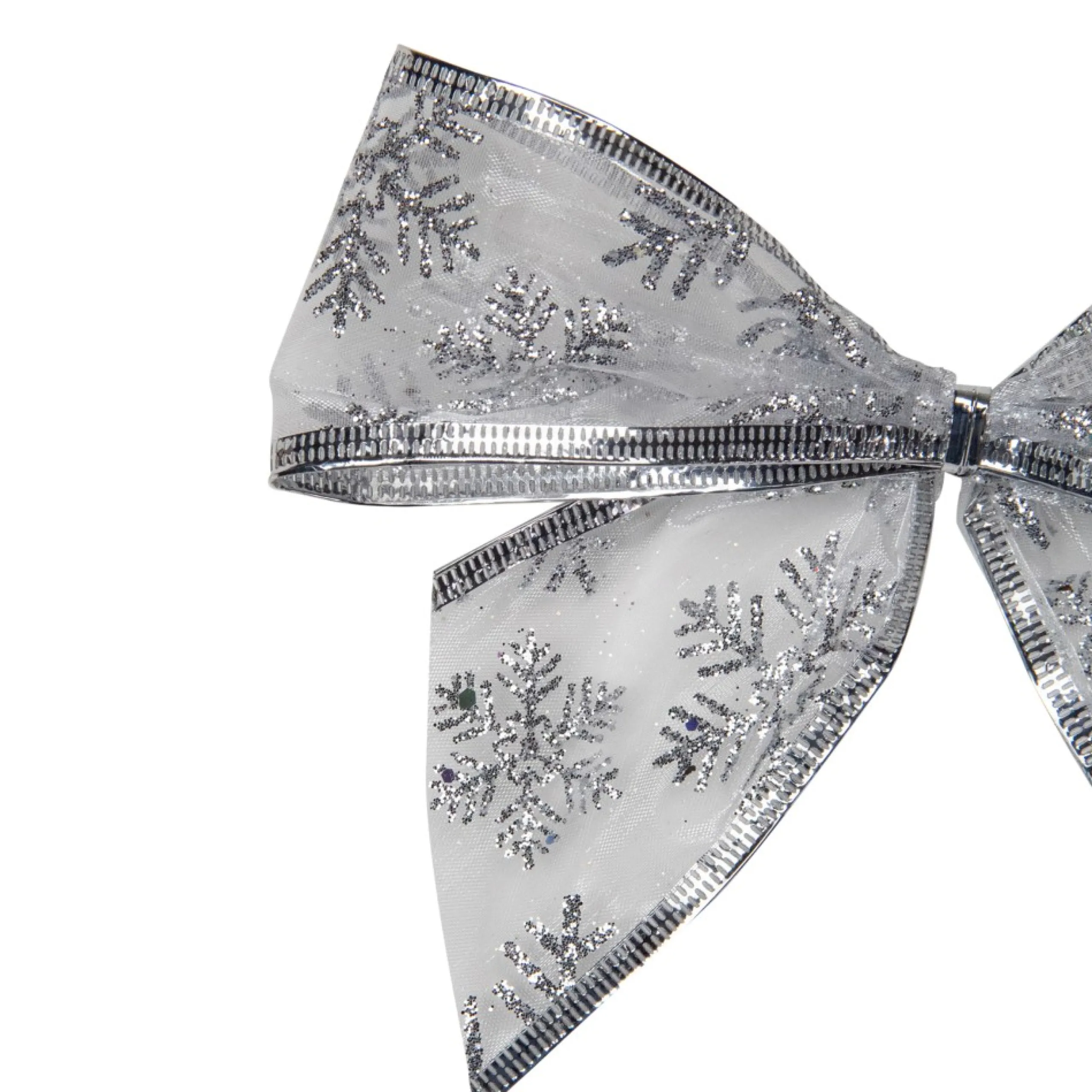 Bows*Northlight Pack Of 6 Sheer Silver Snowflake 2 Loop Christmas Bow Decorations 5.5″