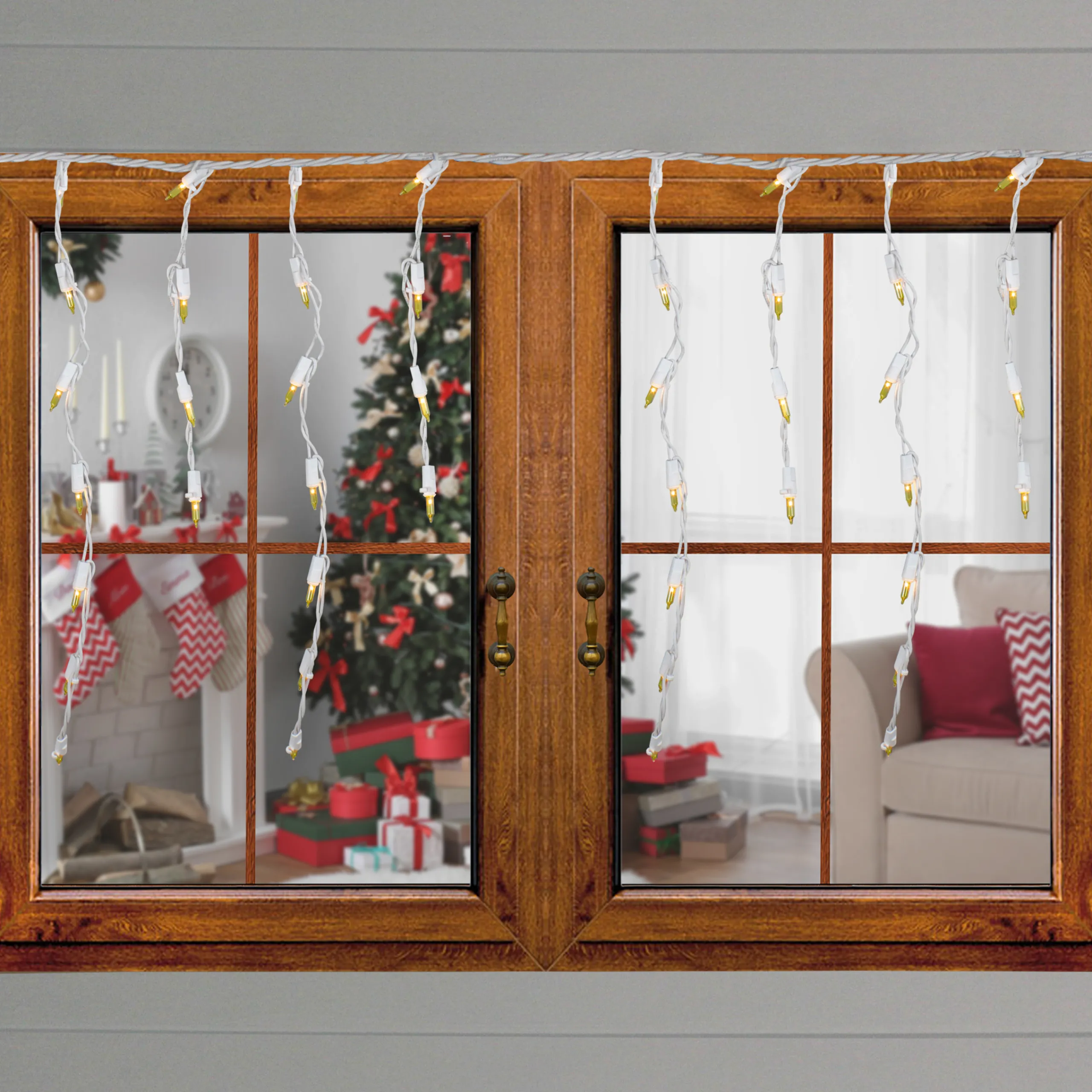 Brite Star Set Of 100 Yellow Mini Icicle Christmas Lights – 7.8Ft White Wire