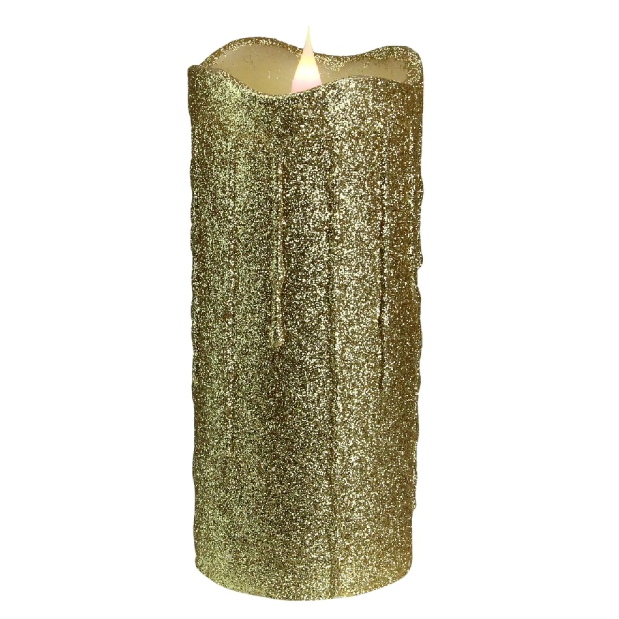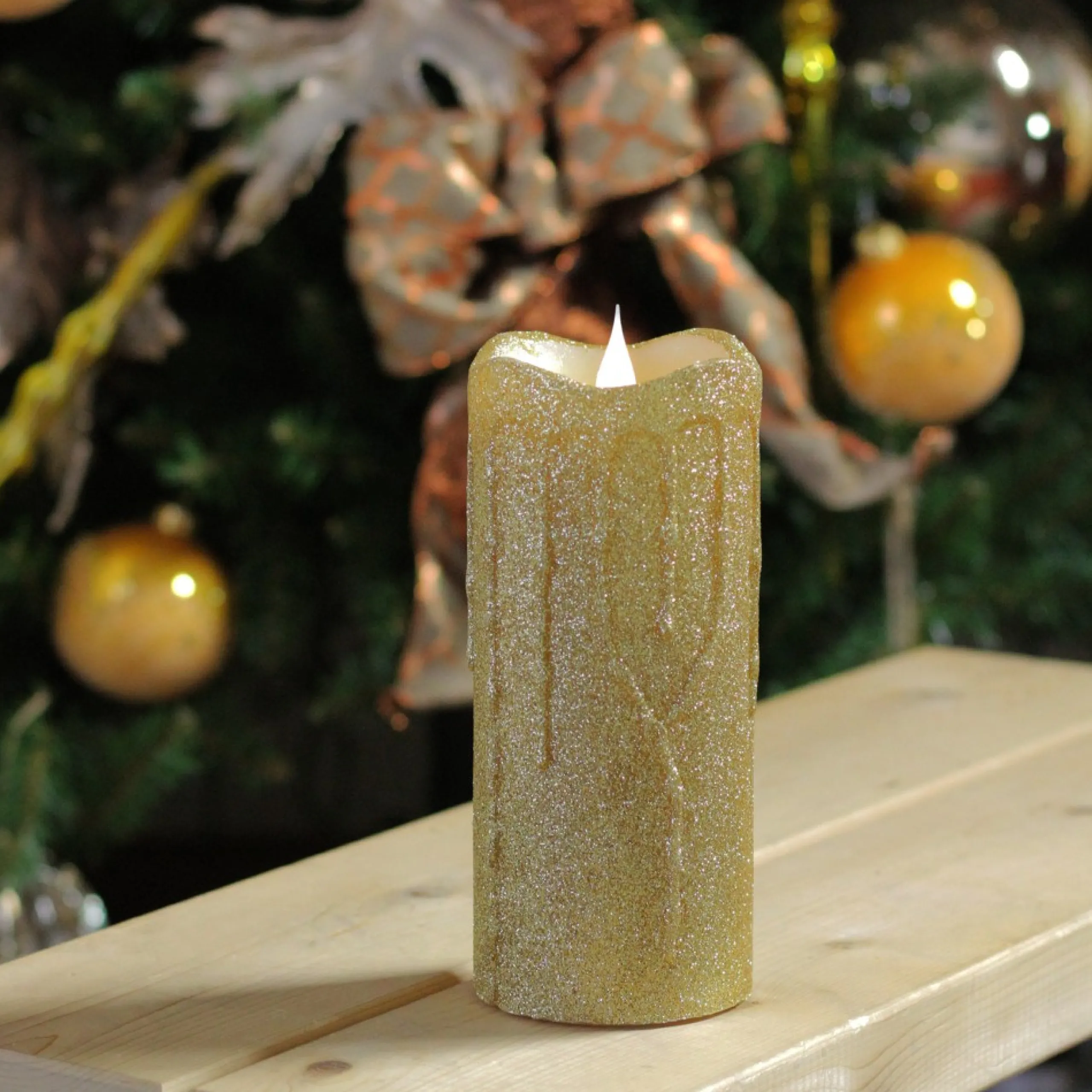 Candles & Holders*Melrose 7″ Battery Operated Gold Glittered Flameless Led Christmas Pillar Candle With Moving Flame