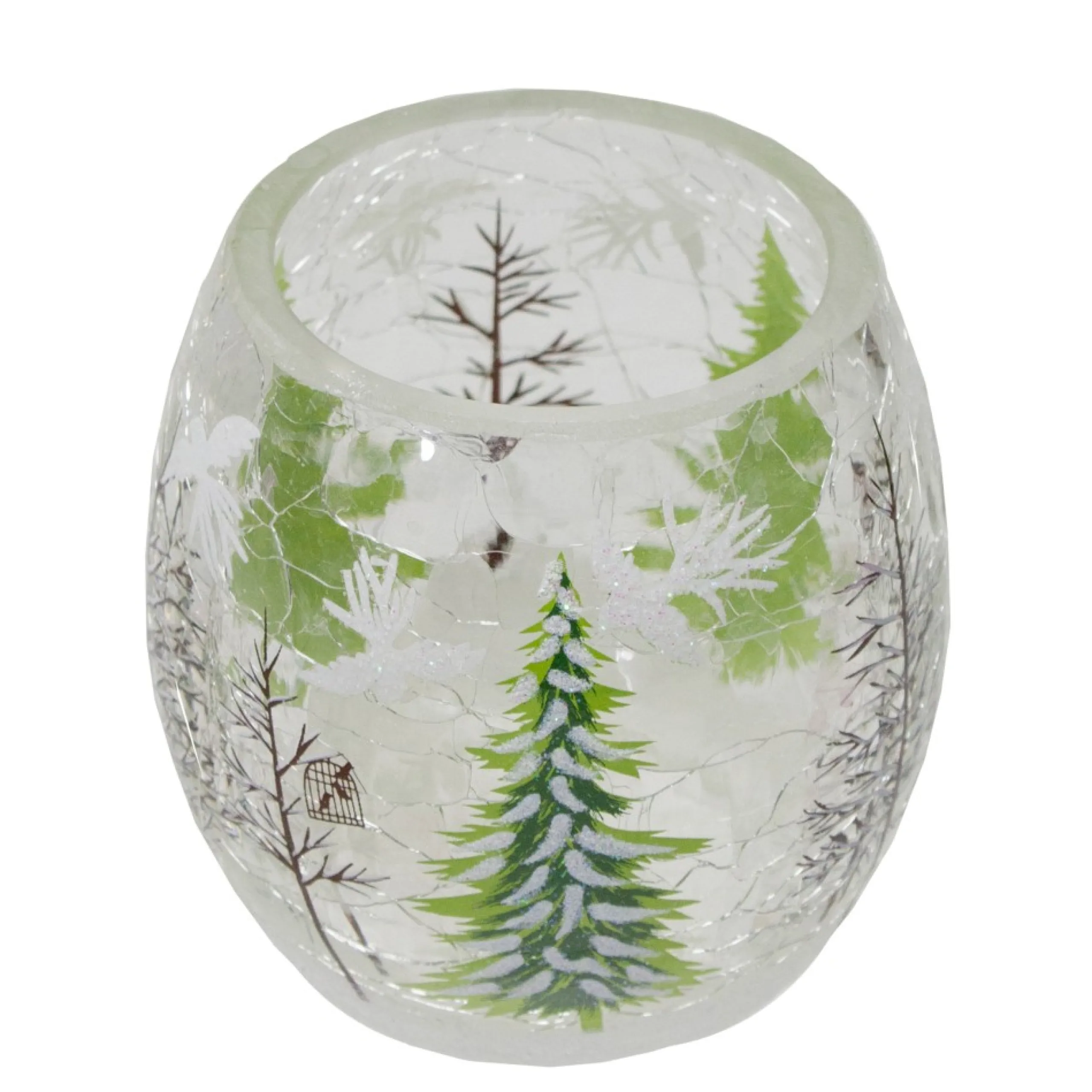 The Beauty Of Pine Comes To Your Home This Christmas On This Flameless Candle Holder And Is Ready To Enchant Your Holiday Festivities. The Flameless Candle Gives You A Safer Option Than A Traditional Candle And The Decoration On This Holder Is Depicts A Wonderful Winter Scene. This Makes A Great Addition To Your Home Or A Gift To Your Friends Or Family!