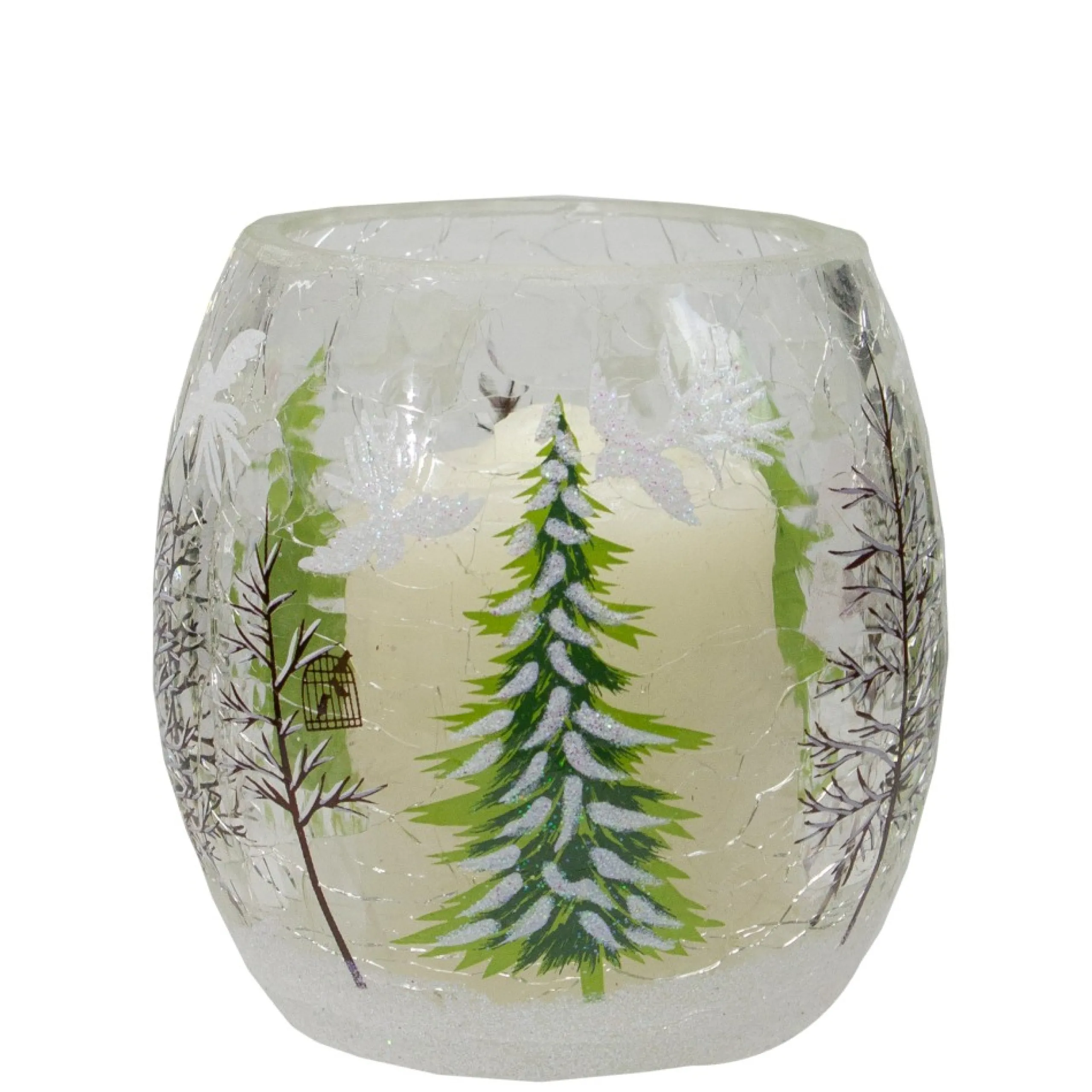 Candles & Holders*Northlight 3″ Hand Painted Christmas Pine Trees Flameless Glass Christmas Candle Holder