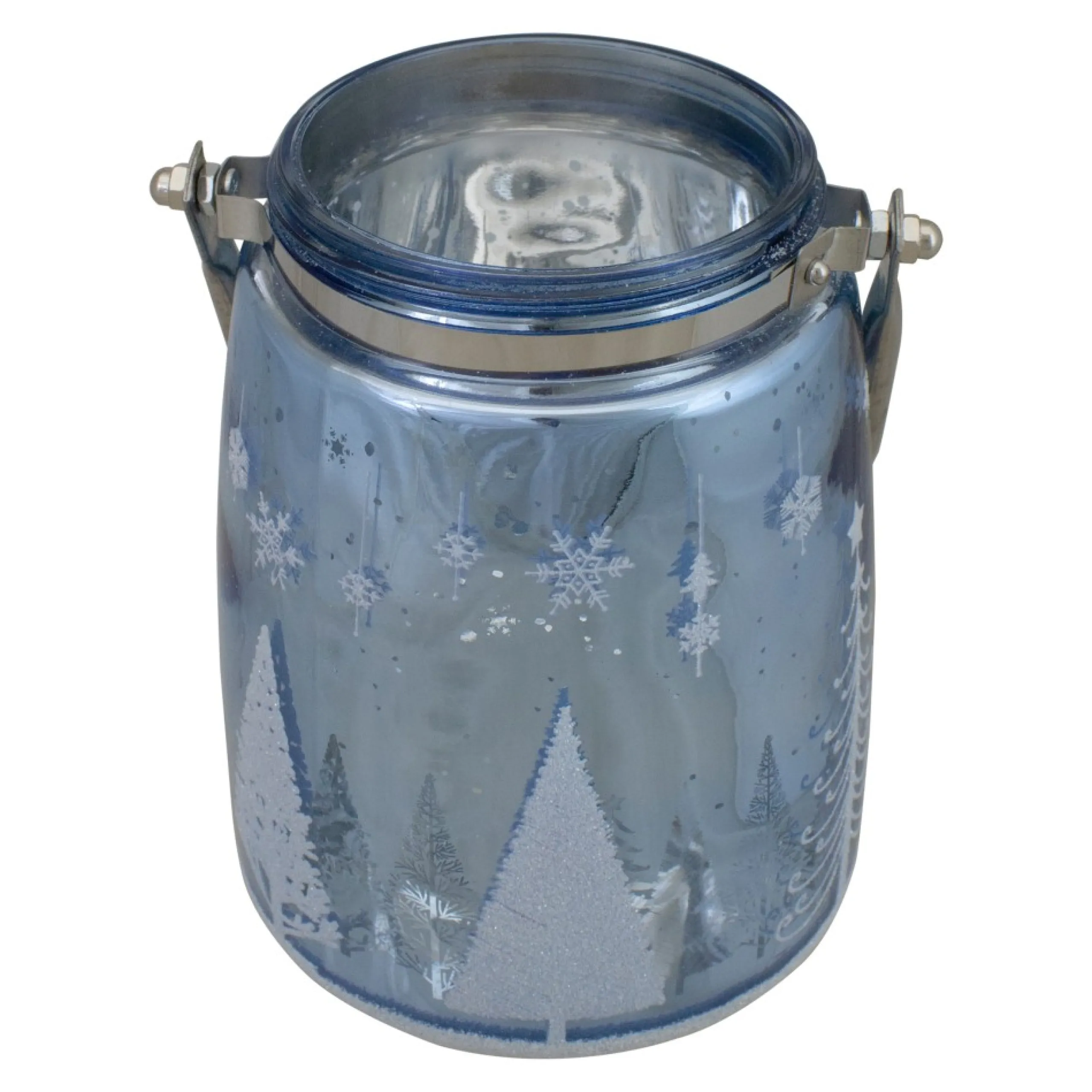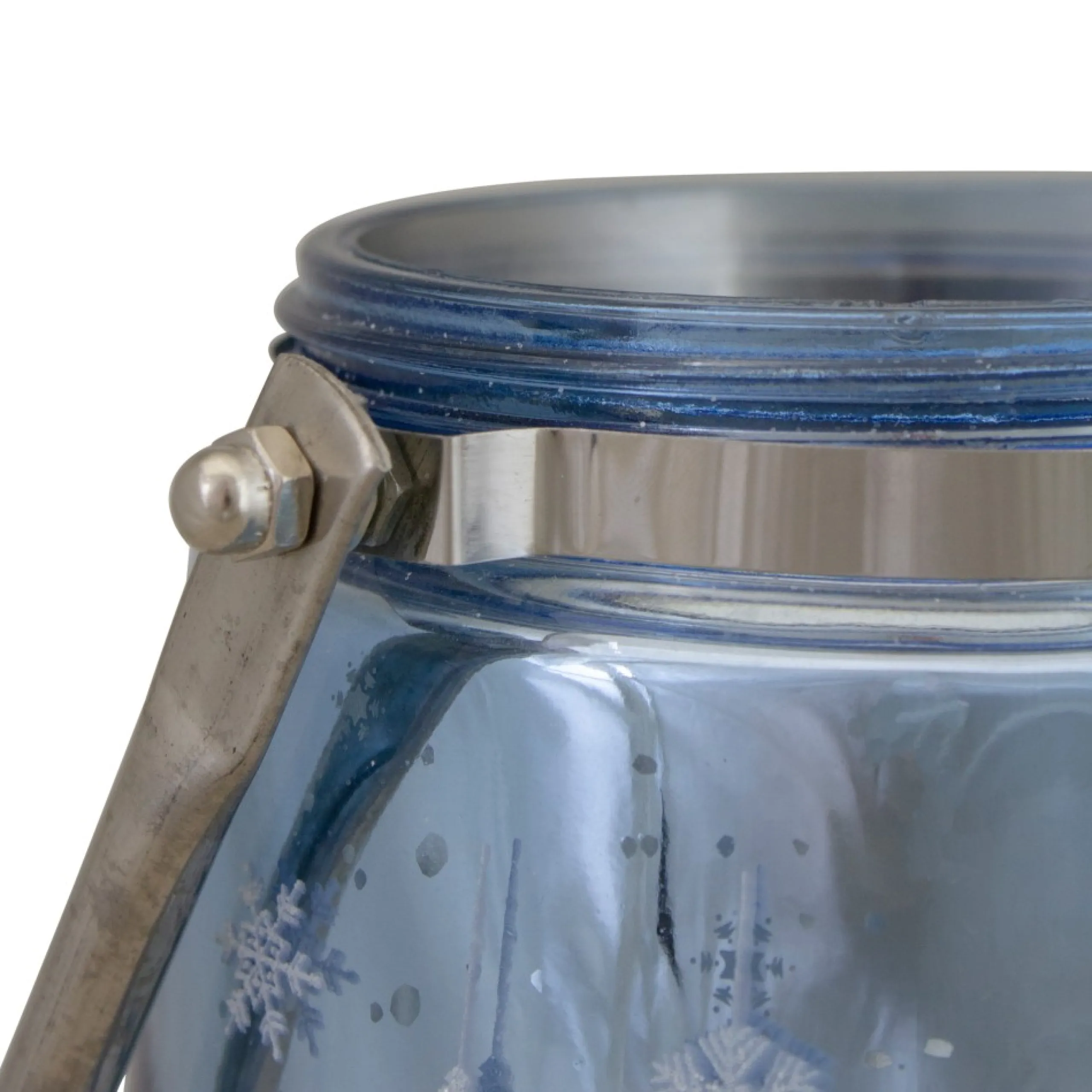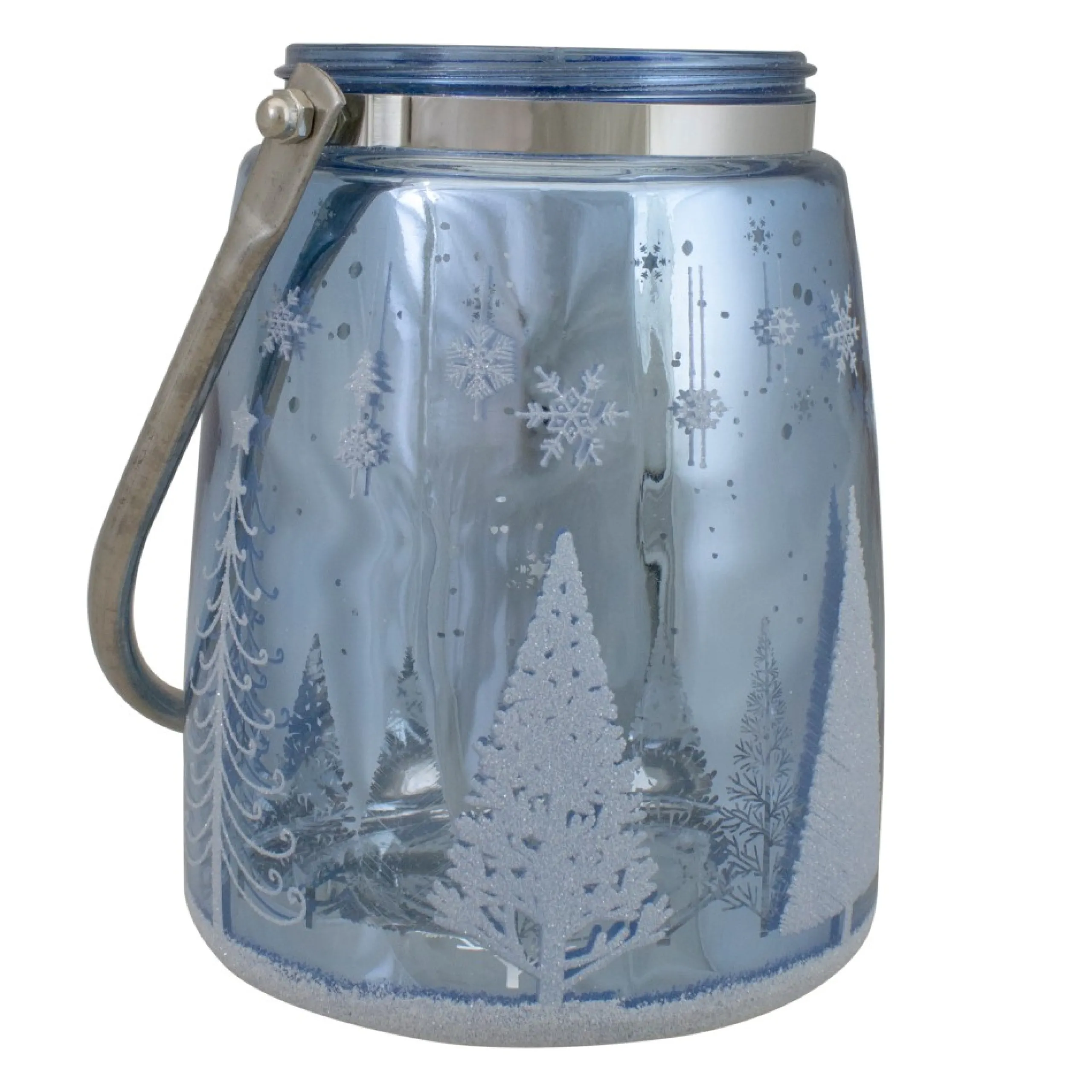 Candles & Holders*Northlight 6.25″ Shiny Blue And Silver Winter Forest And Snowflake Christmas Flameless Candle Lantern