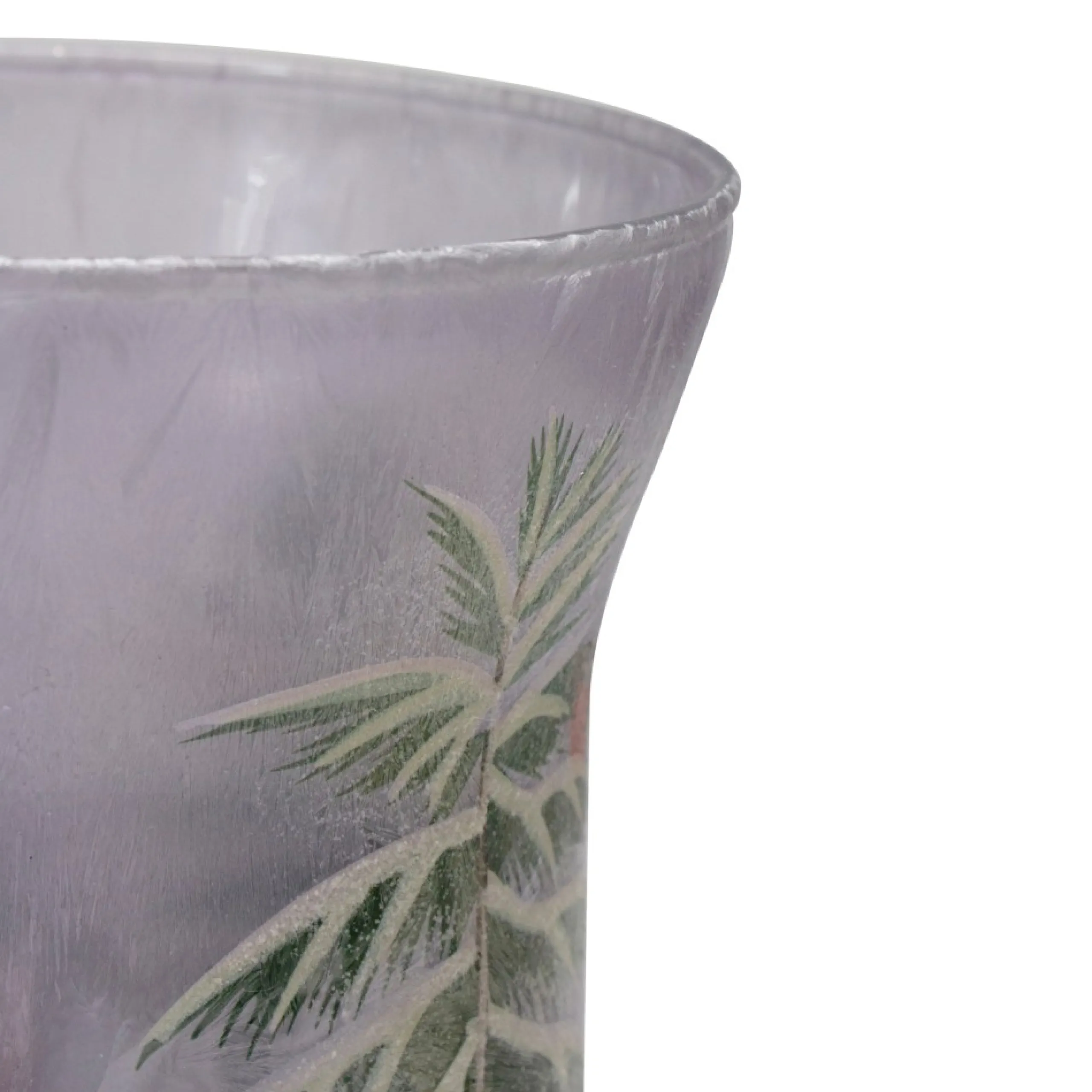 Candles & Holders*Northlight 8″ Hand-Painted Pine And Birds Flameless Glass Christmas Candle Holder