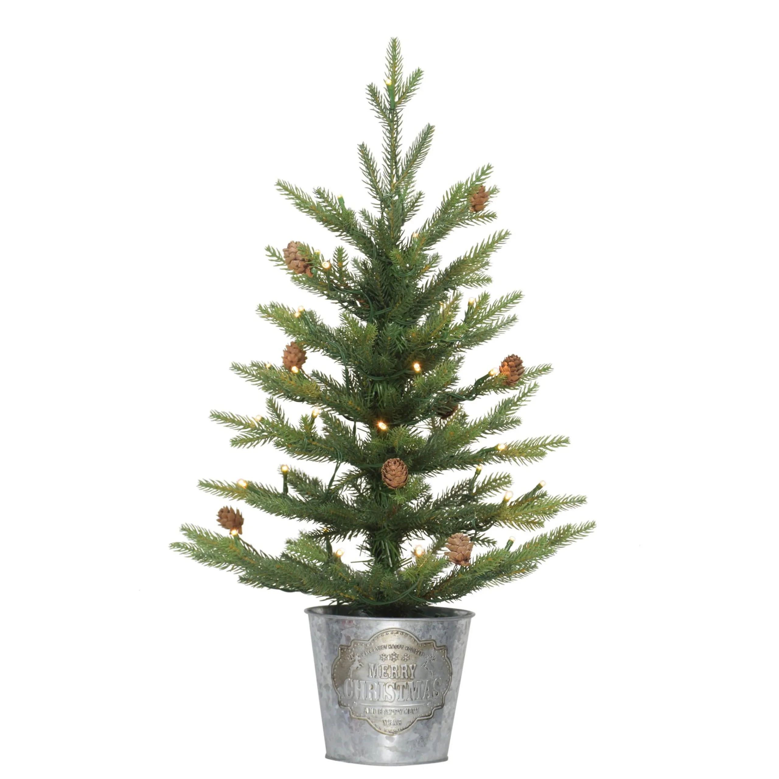 CC Christmas Decor 2.5 Feet Tall And Smaller>2′ Pre-Lit Table Top Artificial Christmas Tree In Metal Pot, Warm White Lights