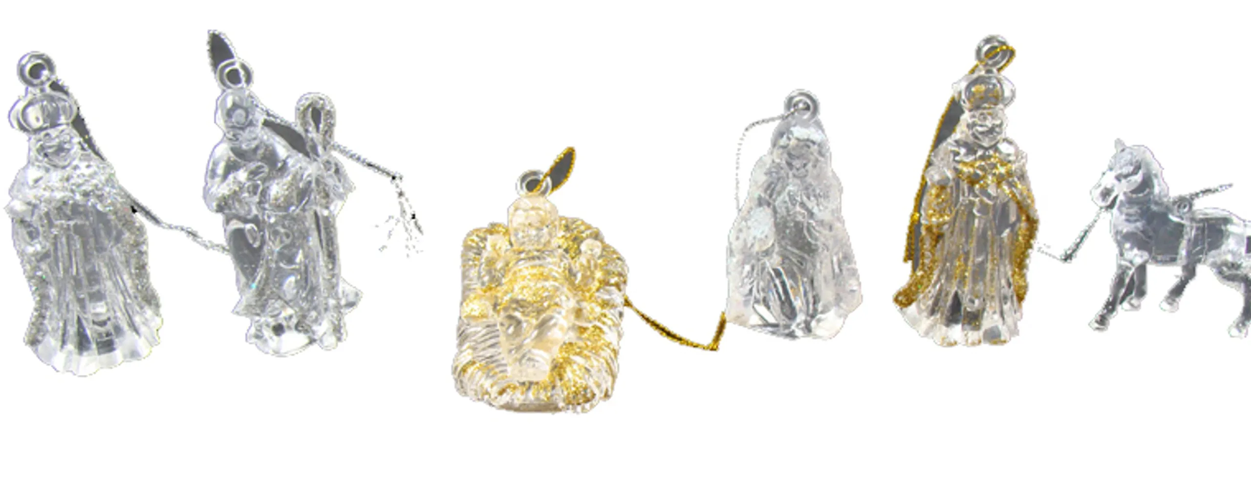 Nativity Figurines Are Embellished With Gold, Silver Or Iridescent Glitter
