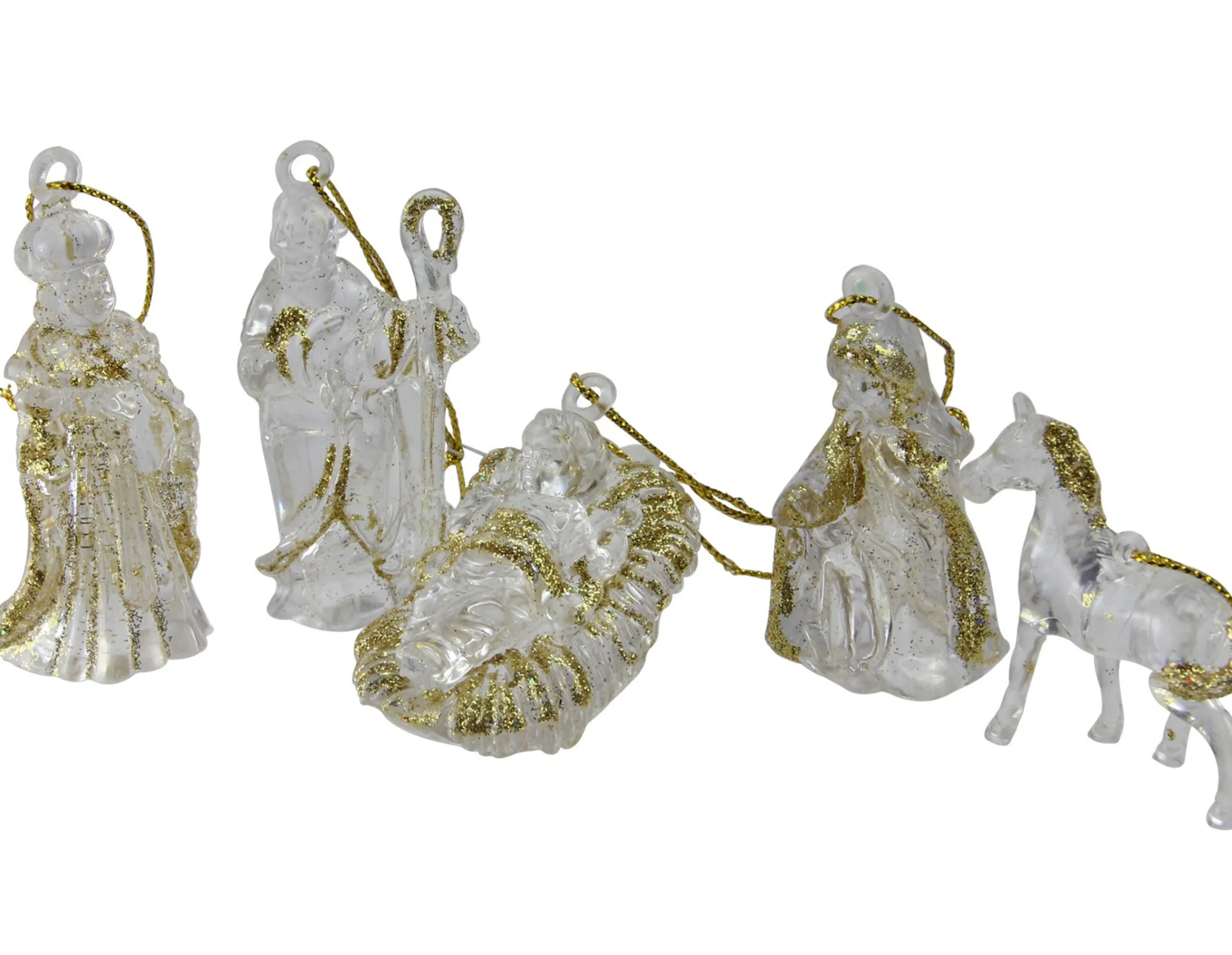 CC Christmas Decor Nativity & Religious>432Ct White And Gold Glittered Nativity Figurine Christmas Ornaments 3″
