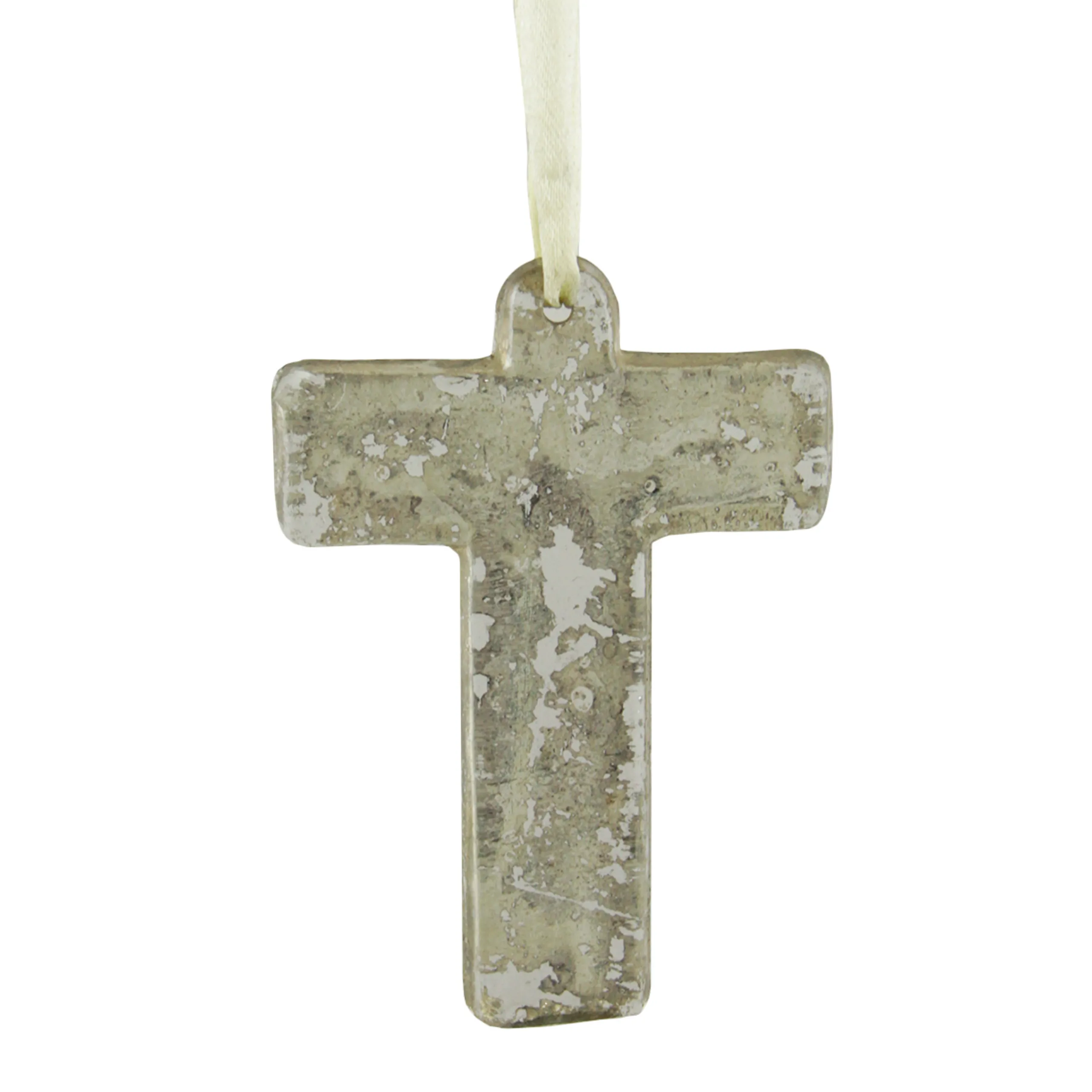 CC Christmas Decor Personalized>4″ Gray Distressed Finish Speckled Glass Monogram Letter T Christmas Ornament