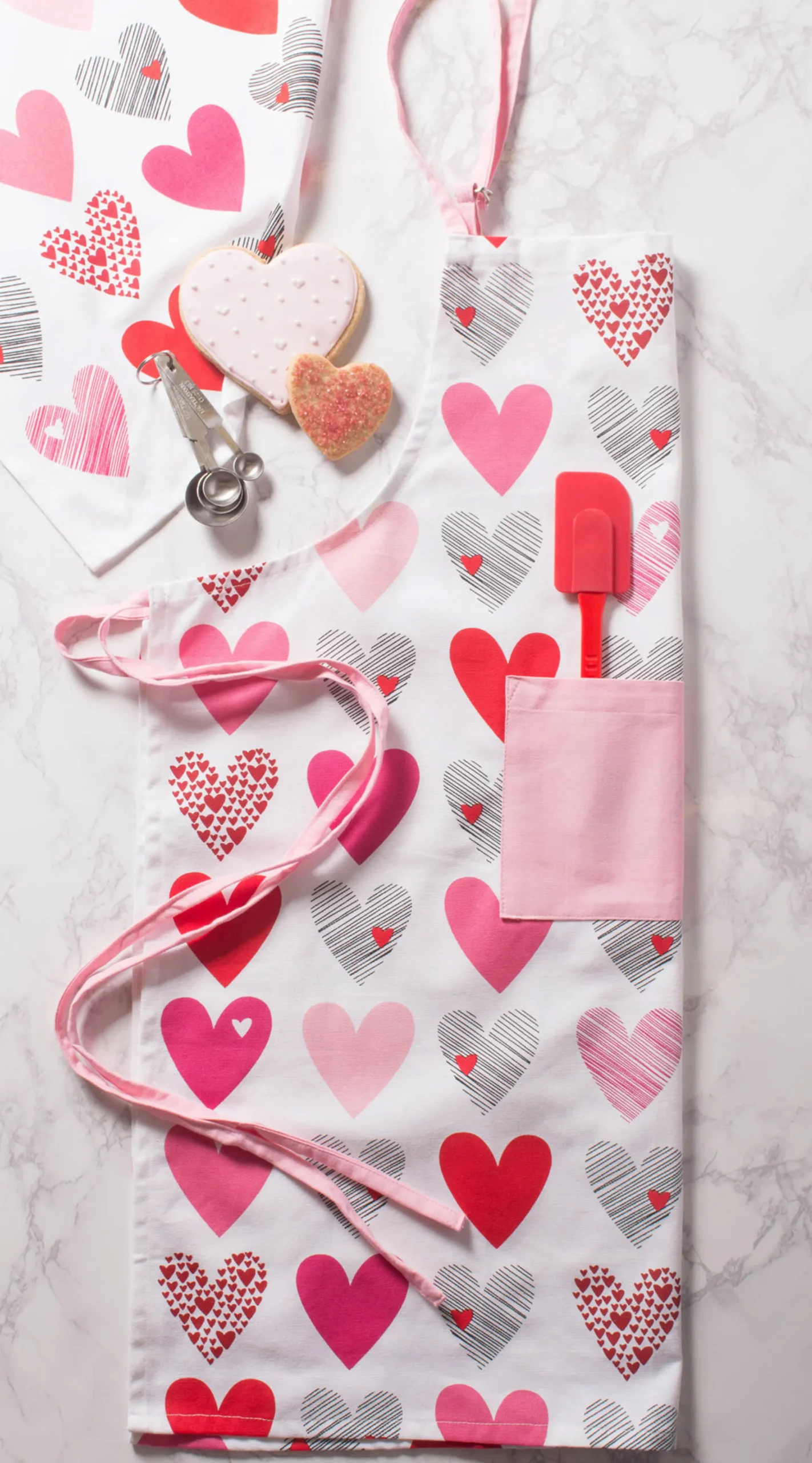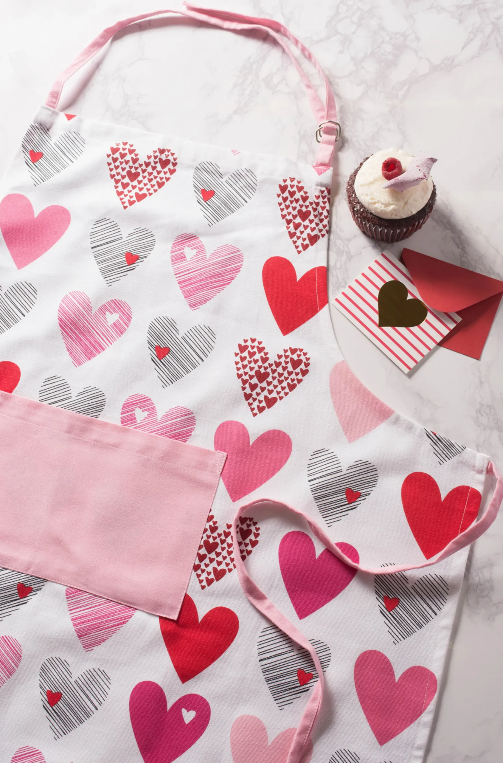 CC Home Furnishings 32″ White And Pink Hearts Collage Printed Chef’s Apron