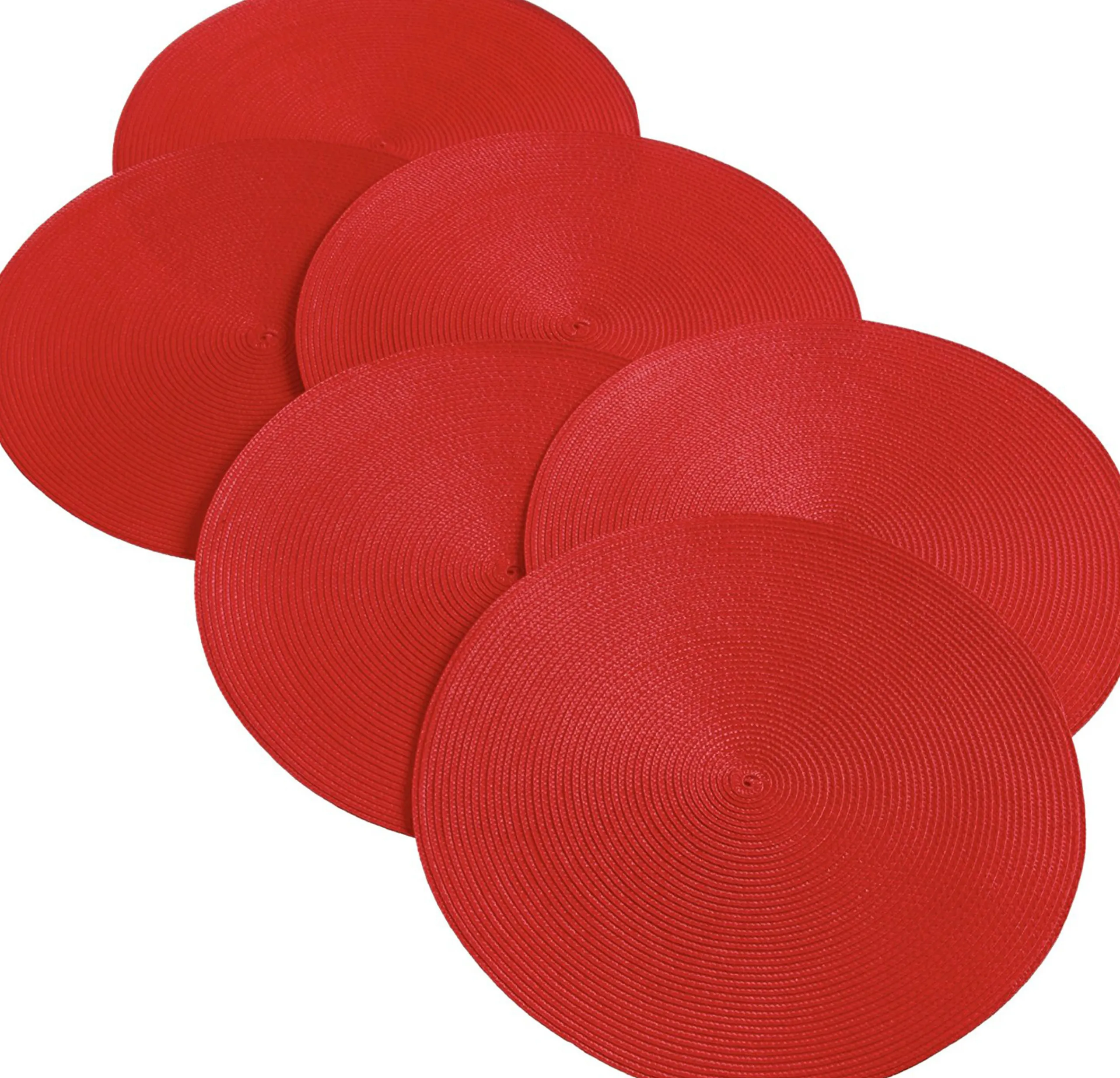 CC Home Furnishings Set Of 6 Red Round Indoor Braided Table Place Mats 14.75″