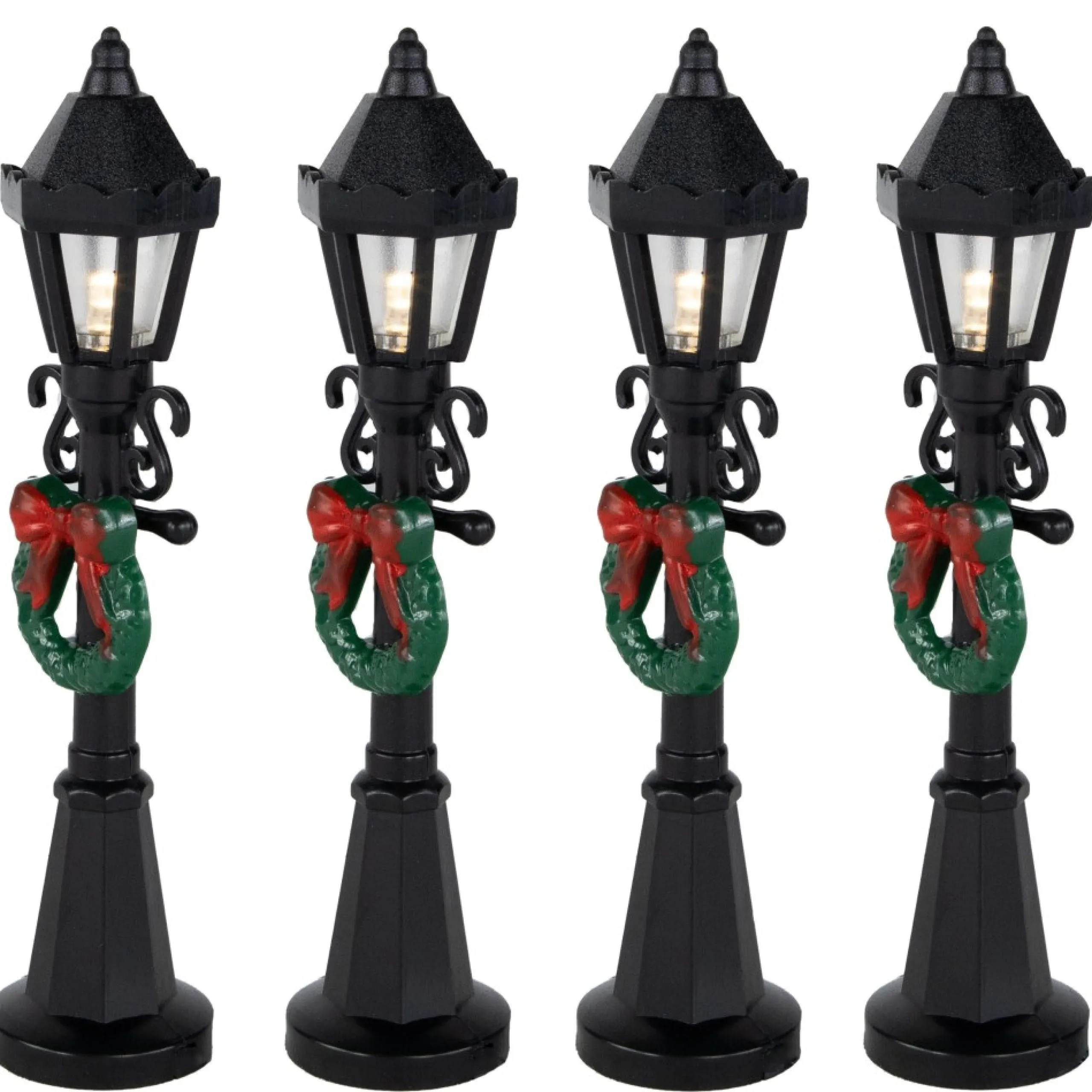 These Festive, Battery Operated Street Lamps Are The Perfect Addition To Any Christmas Village Scene. Each One Is Adorned With A Christmas Wreath. The Warm White Lights, Add The Perfect Amount Of Glow. Small In Size, These Pieces Are Ideal For Nativity And Village Scenes.
