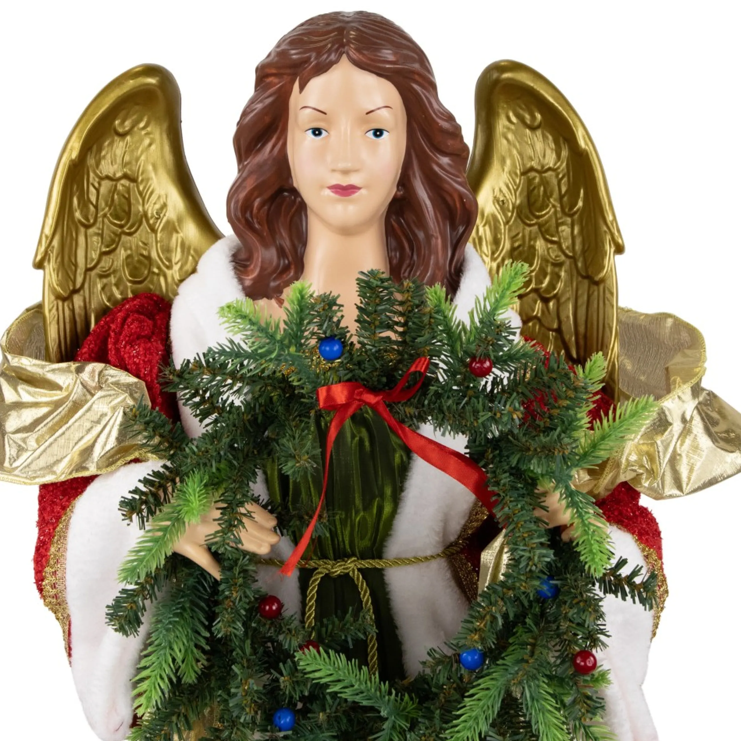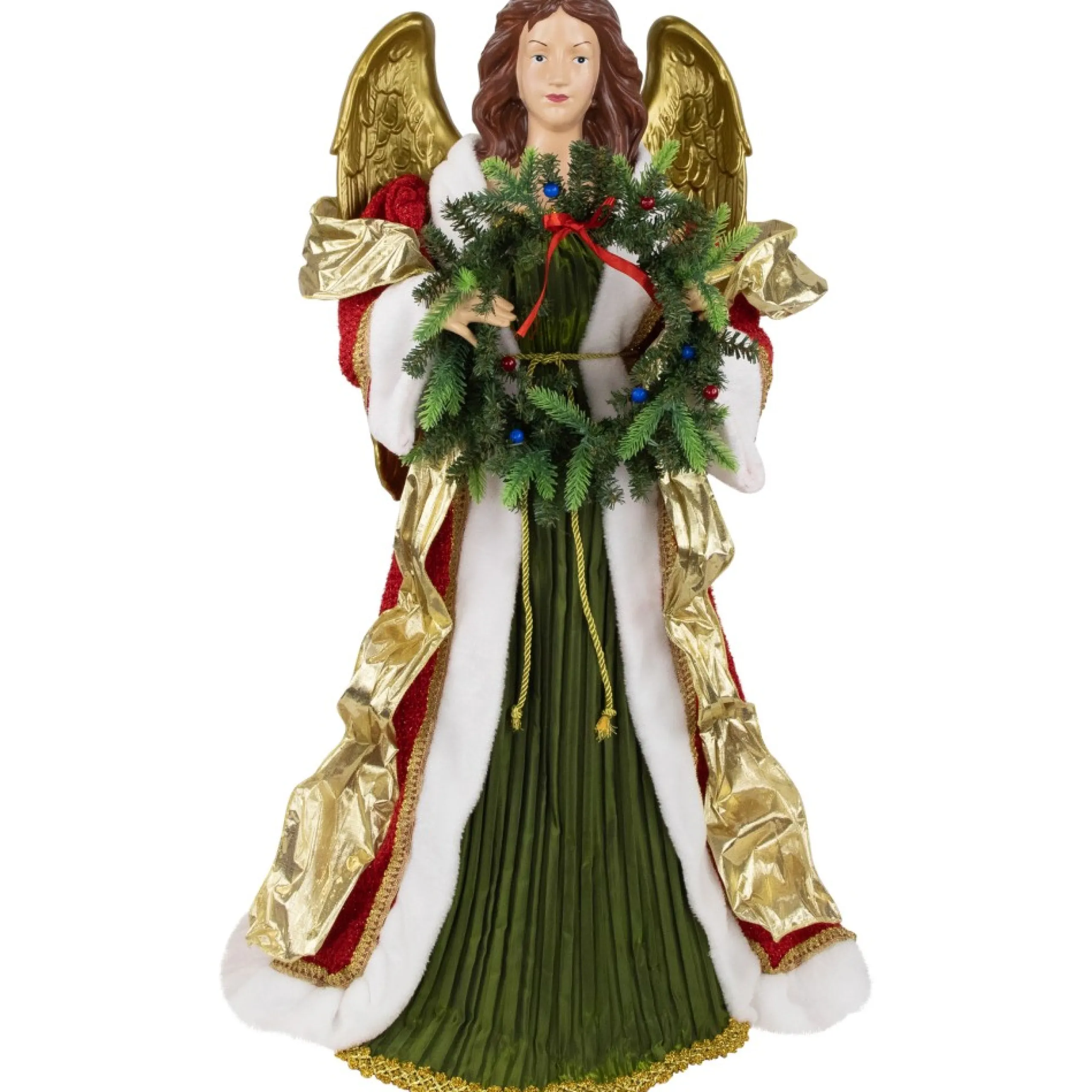This Magnificent Angel Exudes Grace And Elegance, Standing Tall And Proud As The Centerpiece Of Your Holiday Celebrations. Dressed In A Stunning Green Gown Adorned With Intricate Details, Such As Metallic Gold Wings, And Holding A Christmas Wreath With A Red Bow. Securely Place Atop Any Commercial-Size Christmas Tree, And Watch This Angel Become The Crowning Glory, Reminding Everyone Of The True Spirit Of The Season.