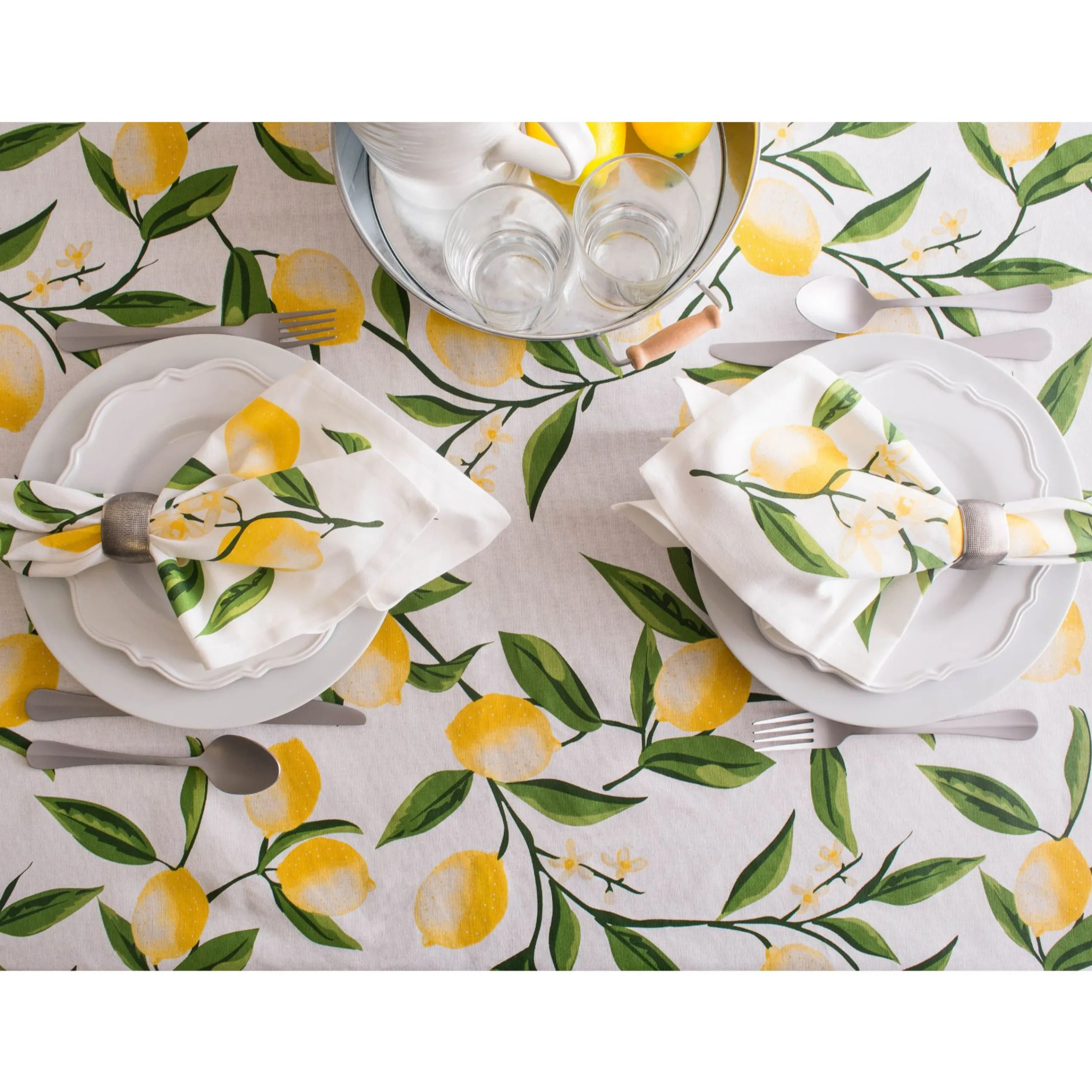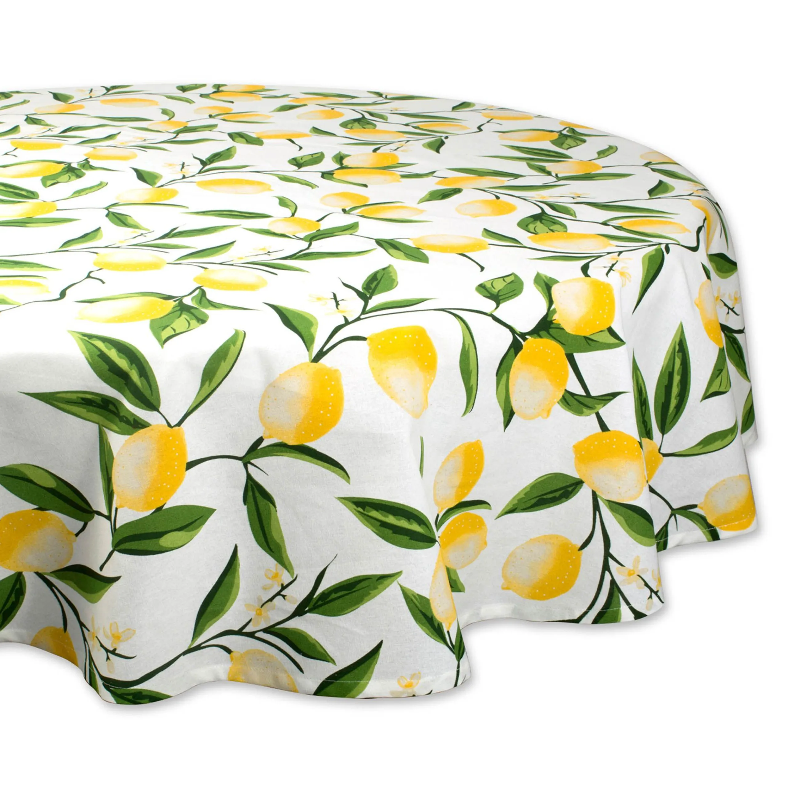 Contemporary Home Living 70″ Daffodil Yellow And Green Lemon Bliss Printed Round Tablecloth