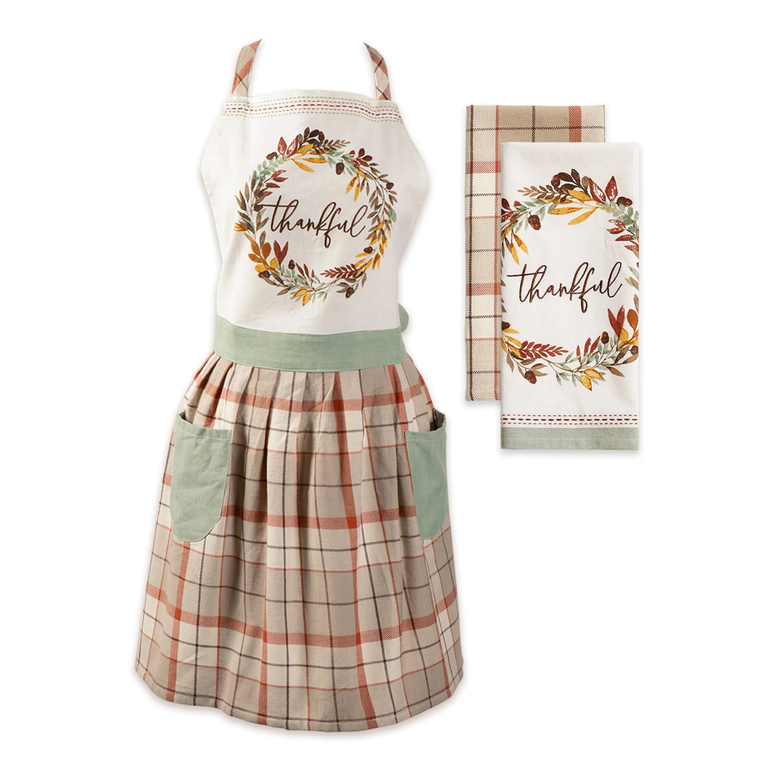 Contemporary Home Living Set Of 3 Autumn Harvest Thankful Apron And Towels Kitchen Set