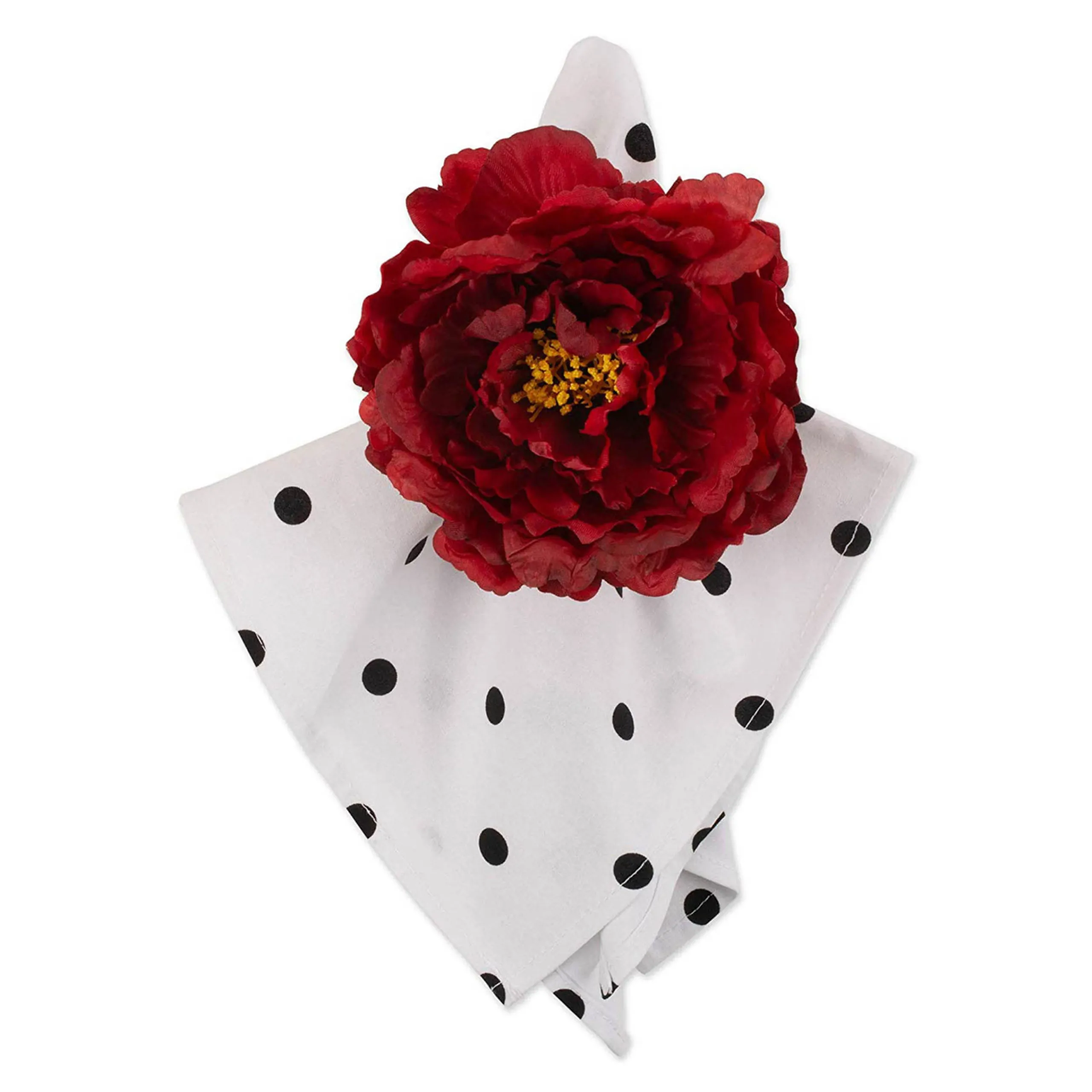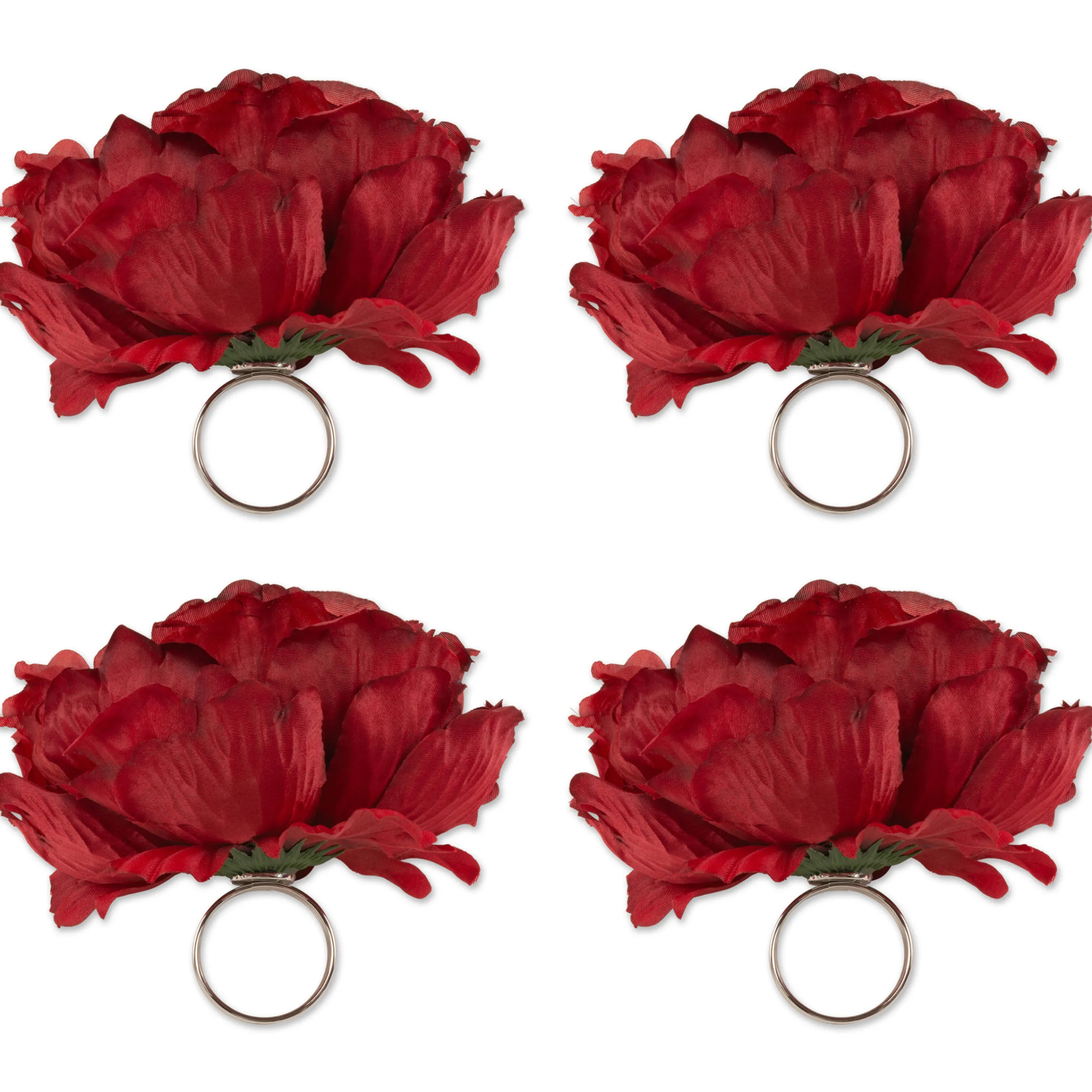 Contemporary Home Living Set Of 4 Red Peony Flower Designed Napkin Rings 5″