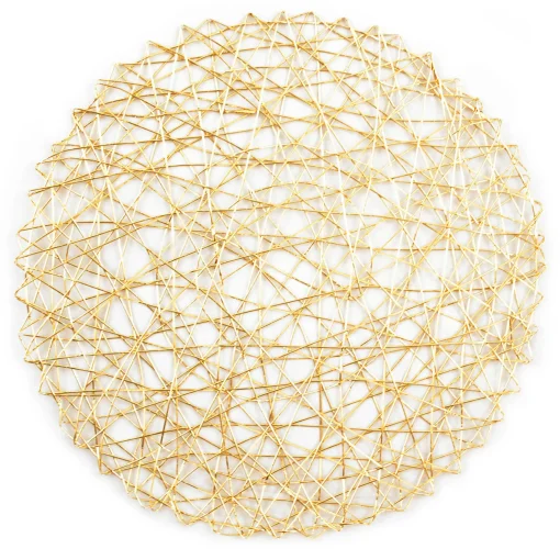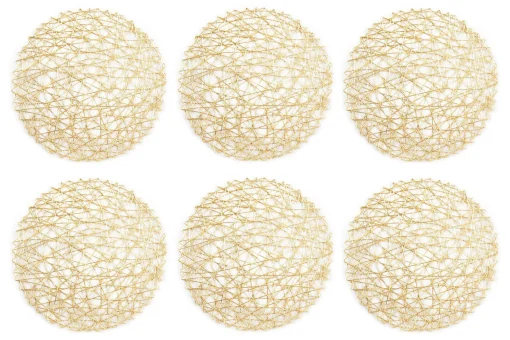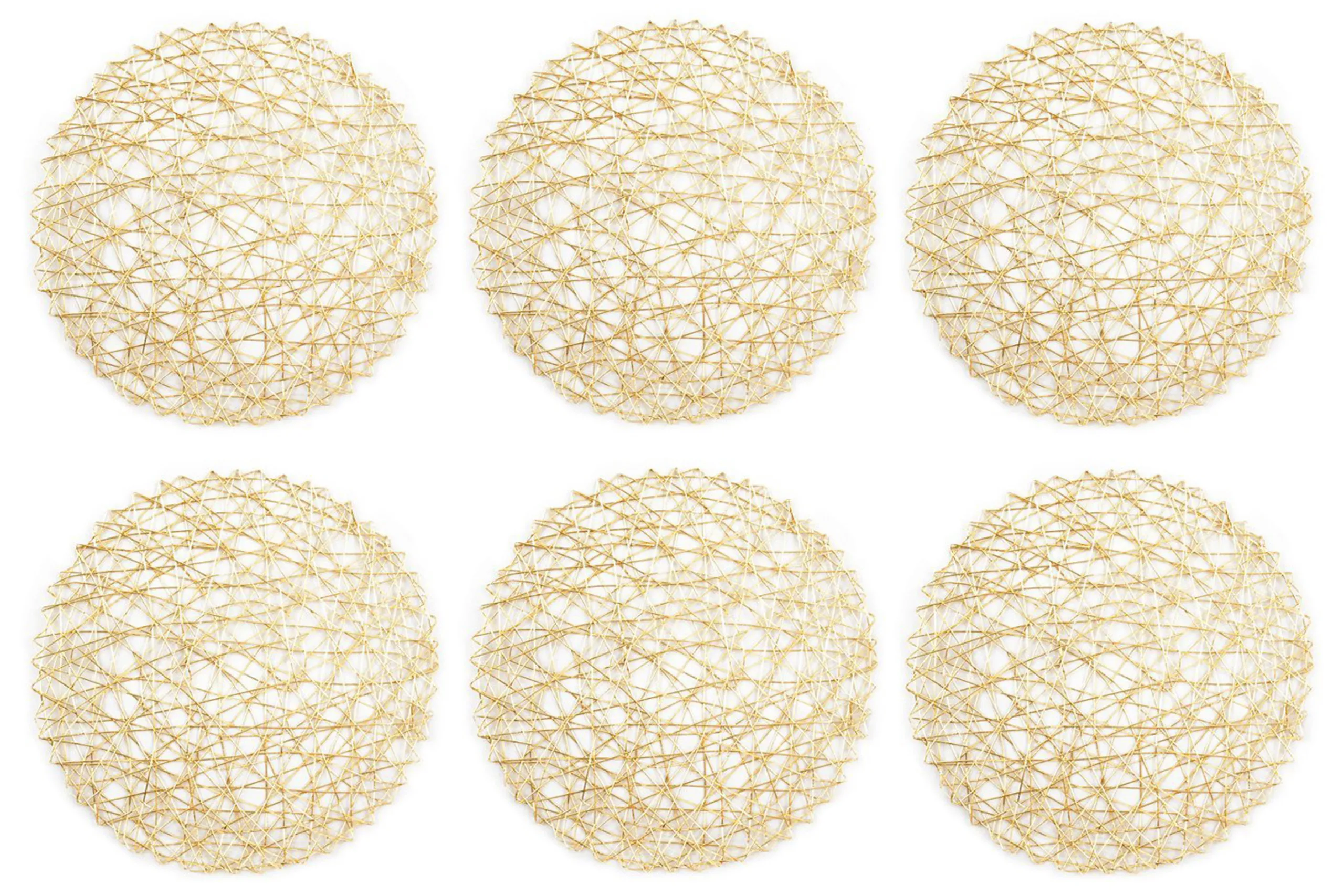 Contemporary Home Living Set Of 6 Metallic Gold Round Placemats 15″