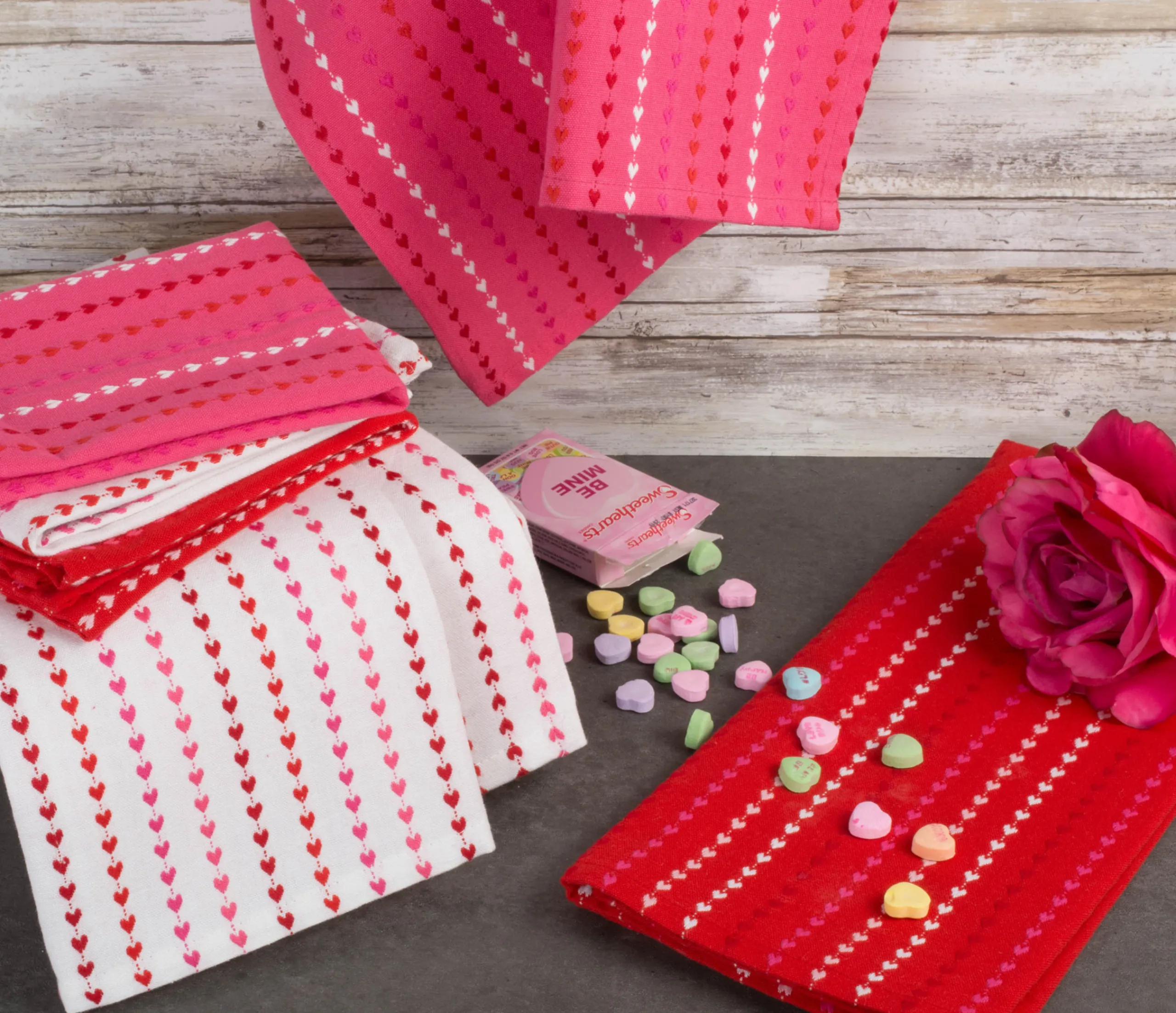 Contemporary Home Living Set Of 6 Pink And White Hearts Striped Dishtowel And Dishcloths 28″